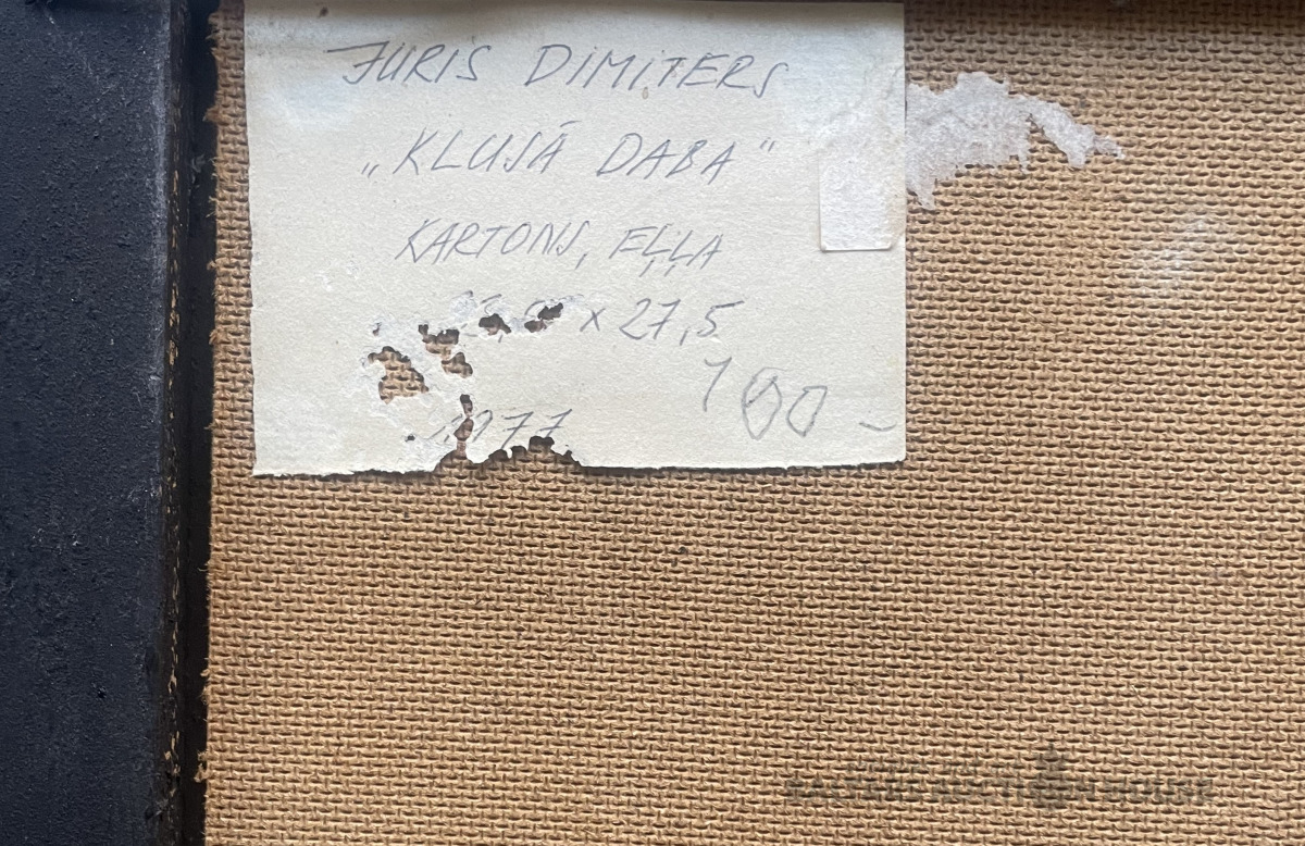 Juris Dimiters 1947. KLUSĀ DABA k.e. 33x27,5 cm, 1977.g. Oriģinālgleznojums ar krāsu uz kartona, nevis izkrāsota fotogrāfija