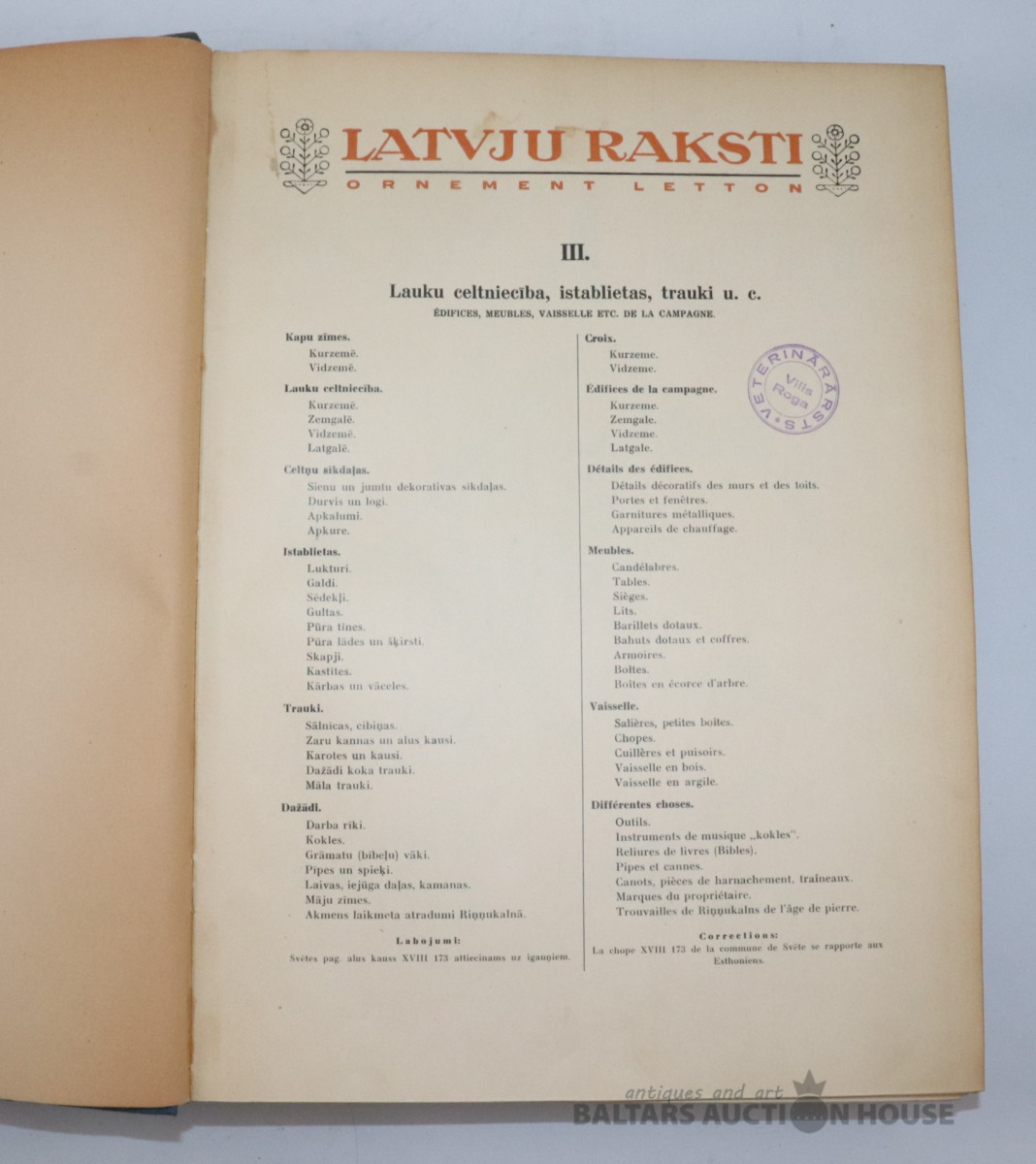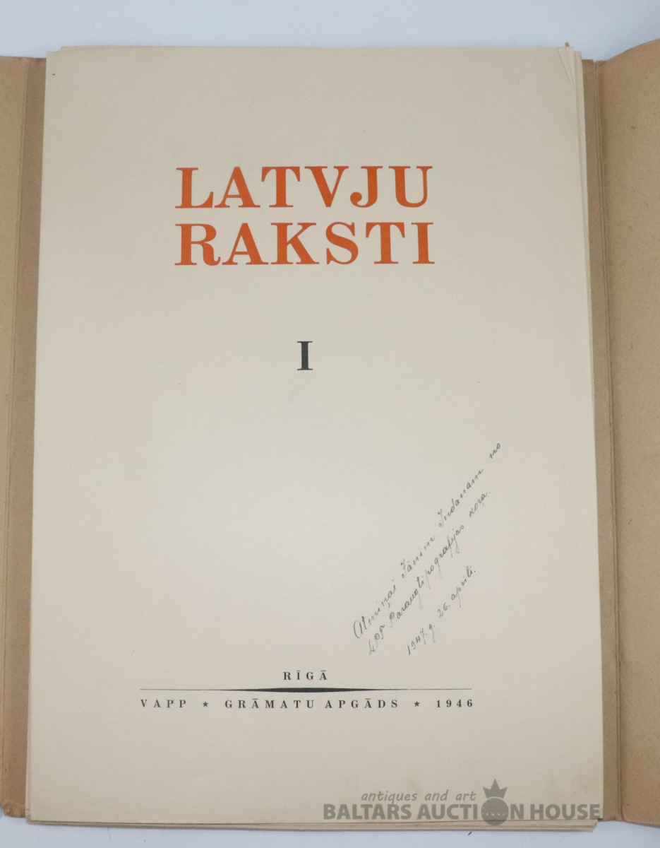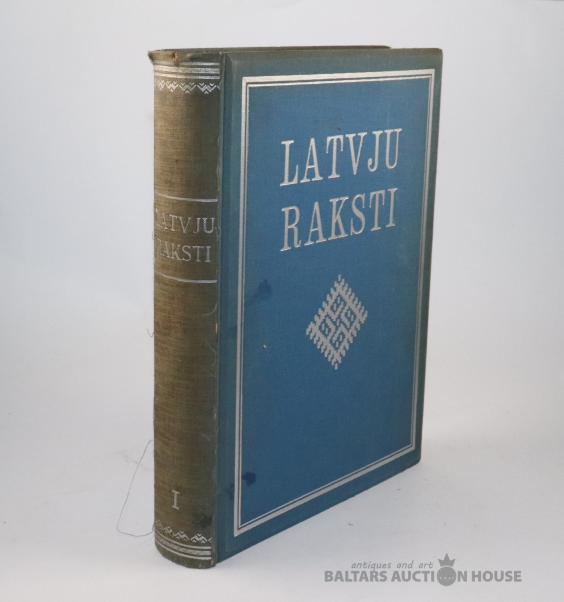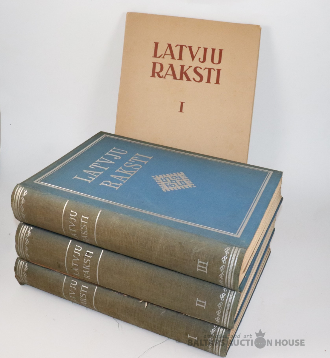 LATVJU RAKSTI 1., 2., 3. sējums. Valstspapīru spiestuves izdevums, 1930. - tie g. un mape LATVJU RAKSTI I, 1946. g.