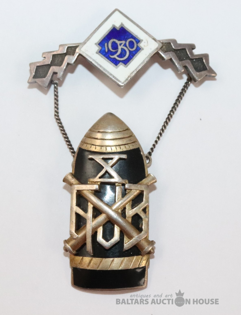 Žetons ARTILĒRIJAS INSTRUKTORU BATERIJAS 10 GADU PASTĀVĒŠANAS PIEMIŅAI, 1930. g. 6x4 cm