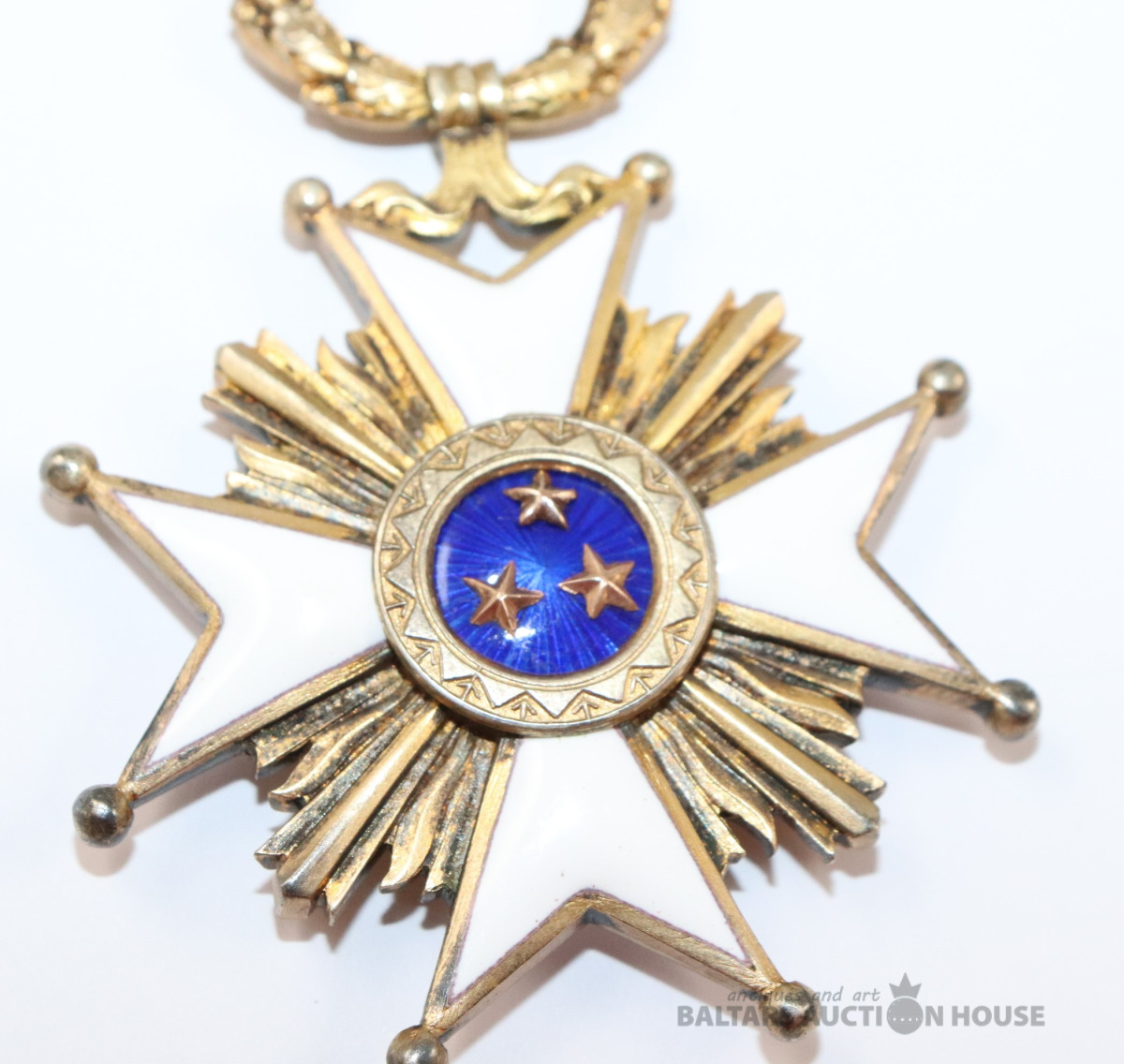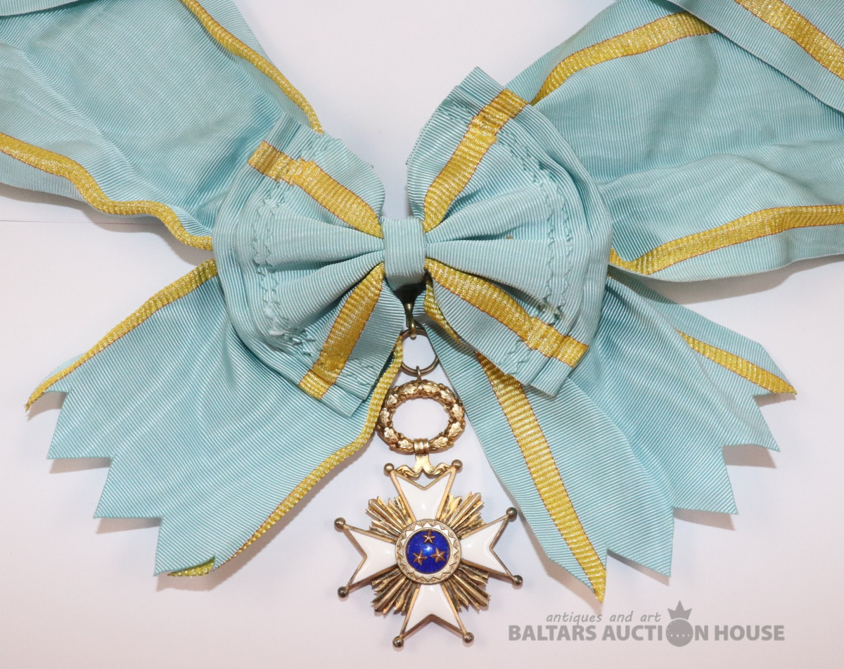 Ulmaņlaika Triju Zvaigžņu ordenis. I šķira. Sudrabs 875. Svars 49,09 g. Lenta jauna.