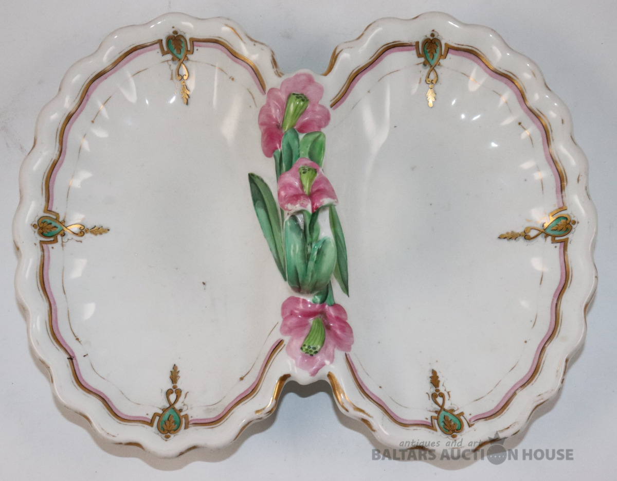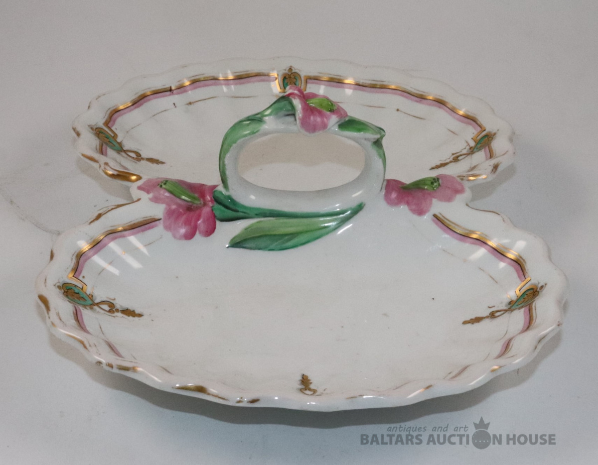 Trauks. JUGENDSTILS, porcelāns, roku gleznojums, zeltījums. Kuzņecova fabrika, Rīga. 10x23,3x29,5 cm