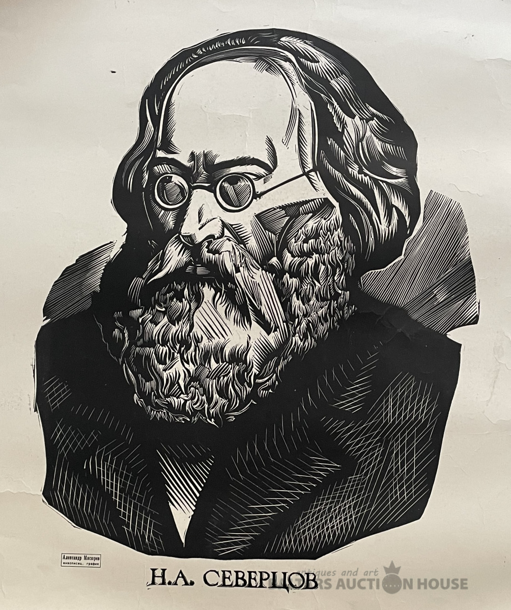 2 darbi - Al.Junkers un Al.Misjurevs "Vecas mājas" 26x39 cm, un "Portrets",80x70 cm, papīrs, tipogrāfija