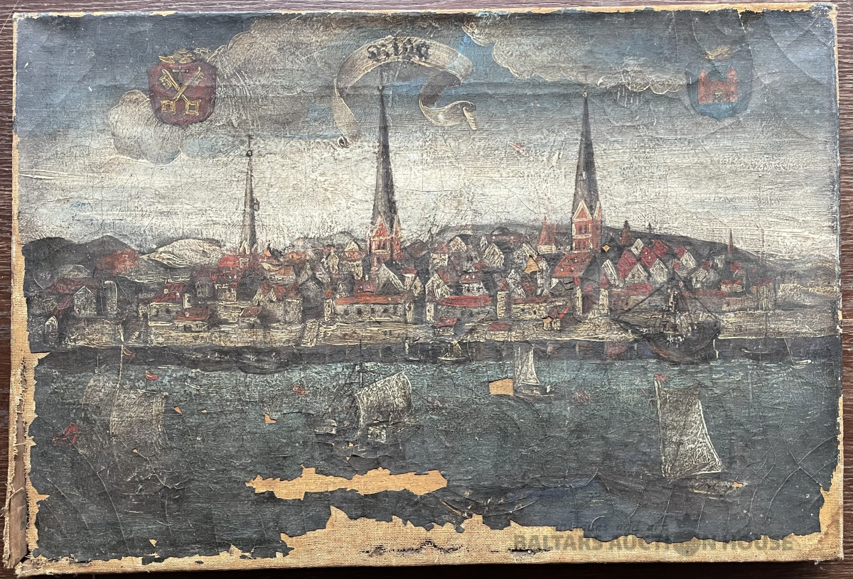 Nezināms autors "RĪGAS Panorāma", a.e., 32x48 cm, ap 1800.g., ir krāsas nobirumi, jārestaurē