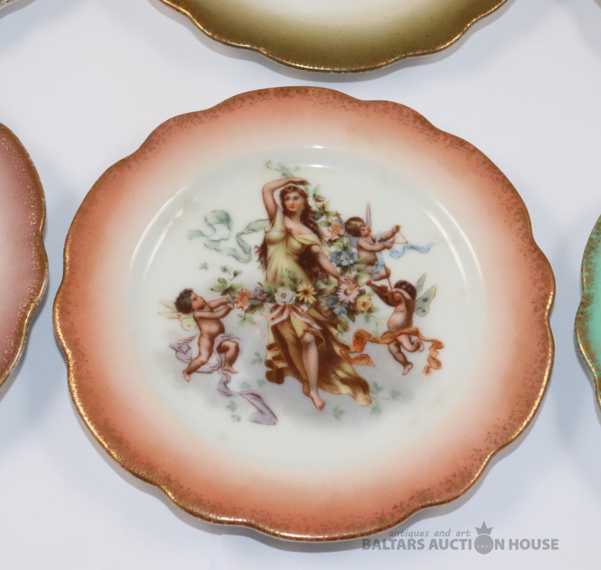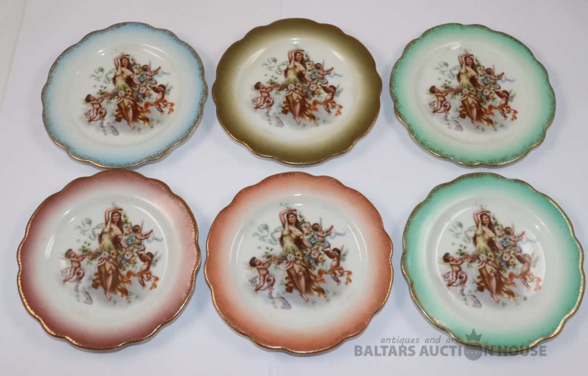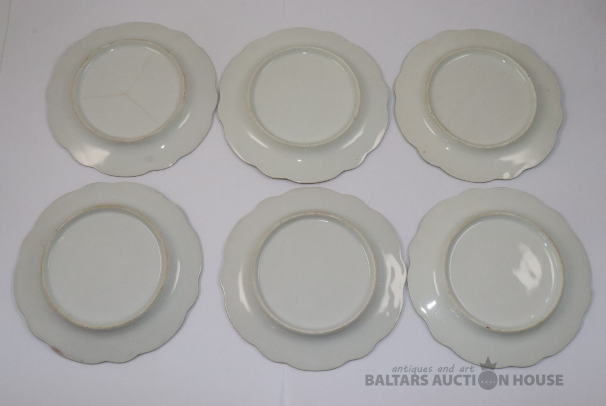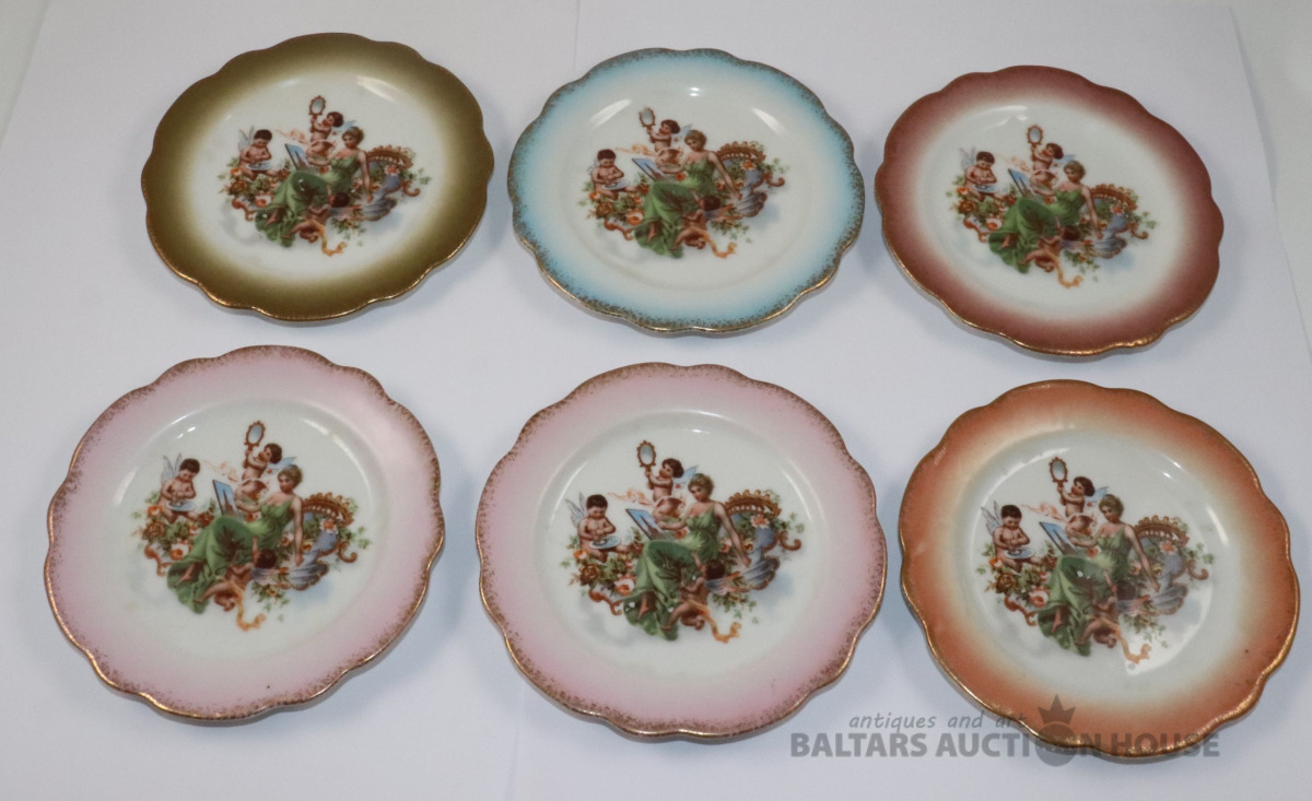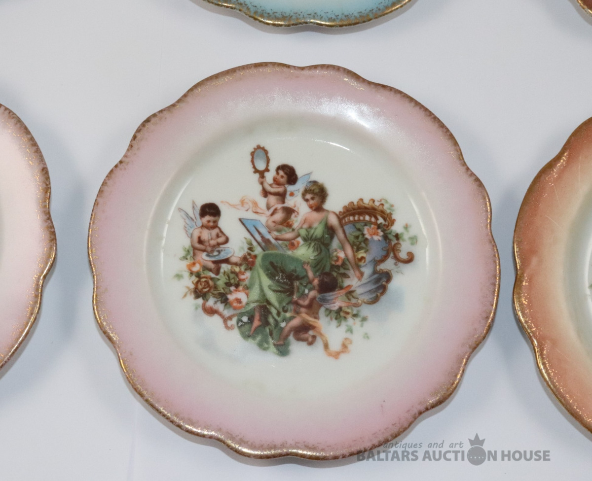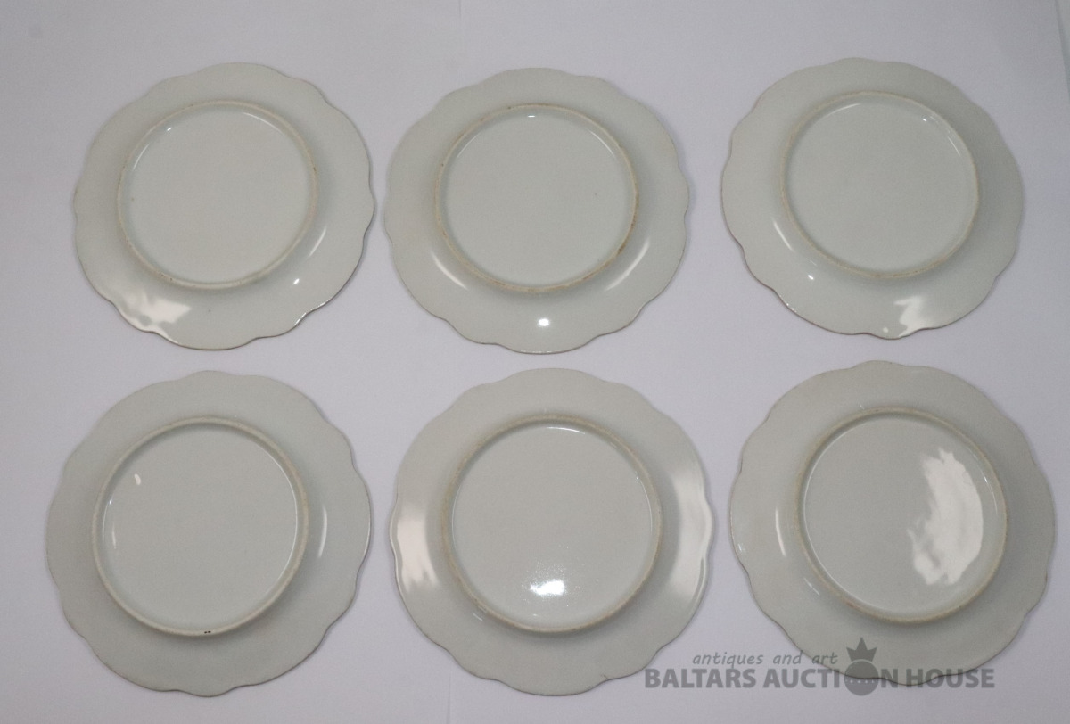 Šķīvji 6 gab. Porcelāns, dekols. d=14 cm. Vienam šķīvim plaisas.