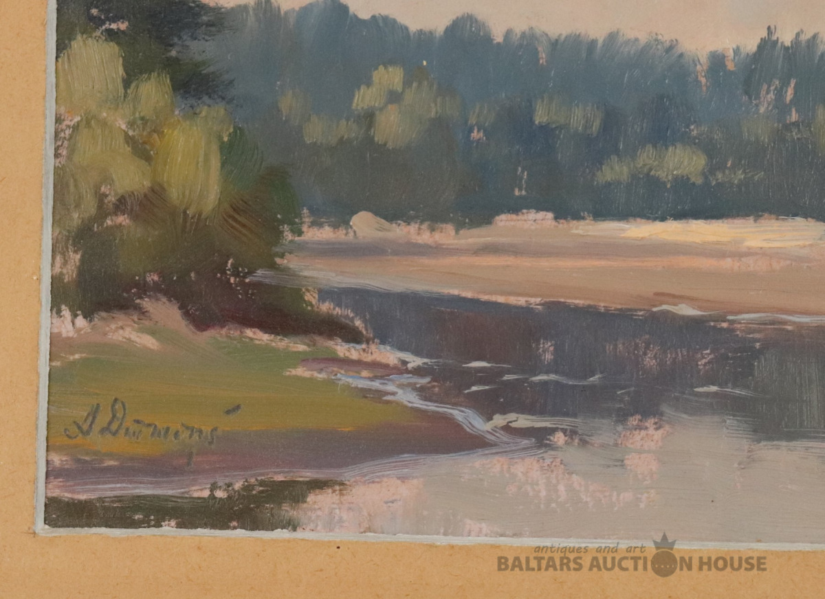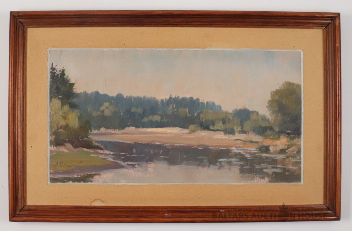 Arvīds DŪMIŅŠ (1907 - 1975). AINAVA AR UPI. Kartons, eļļa. 14x26,5 cm