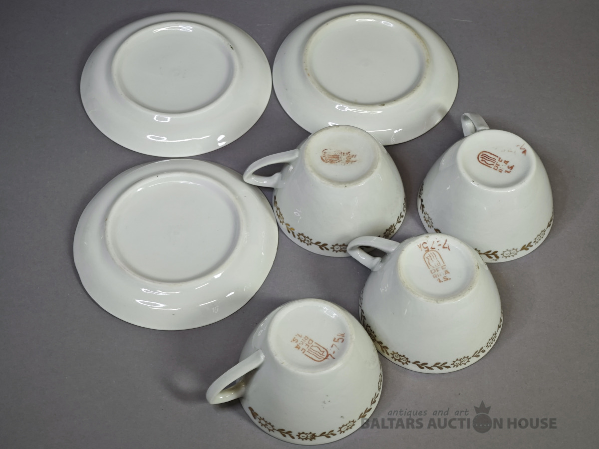 4 Tases ar apakštasiem no MARIJKA tējas servīze, Rīga PFF, bez defektiem