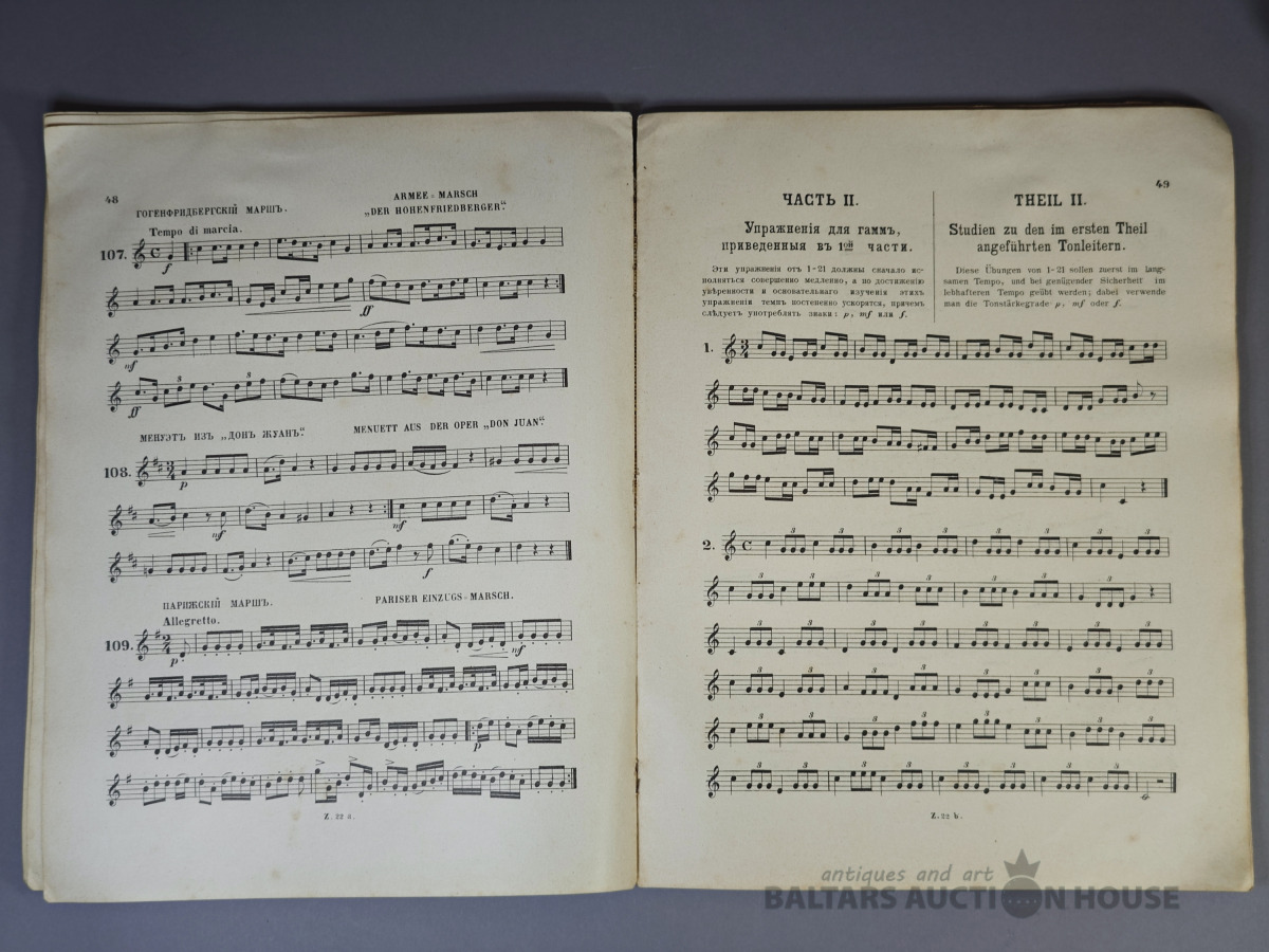 Новая практическая весьма понятная школа корнета с пистонами (Альтгорна или Баритона)" для самостоятельного изучения, написанного А. Ф. Баганцем. издана Юлием Генрихом Циммерманом, поставщиком двора Его Императорского Величества