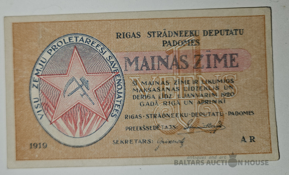 Rīgas strādnieku deputātu padomes maiņas zīme. 1rublis.