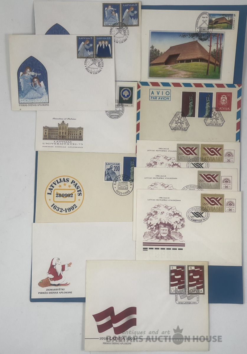 Pastmarkas, konverti 10 gab., 1 pastkarte, Latvija, bez albūma, skatīt 4 foto !!!