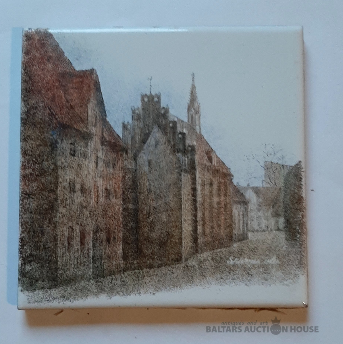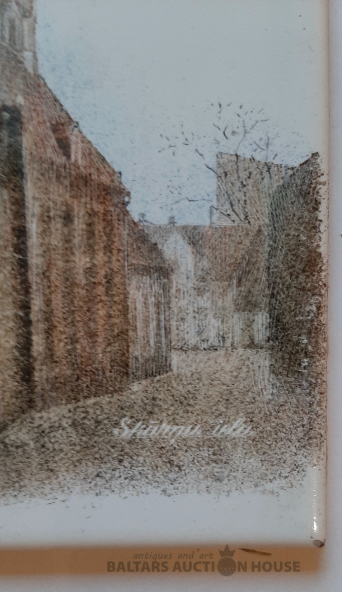 Zīmējums uz flīzēm Skārņu iela 1989.gads. 15 cm x 15 cm.