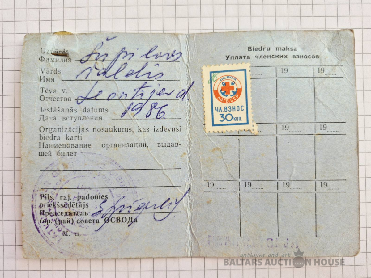 Zīme un biedra kartes . ОСВОД.