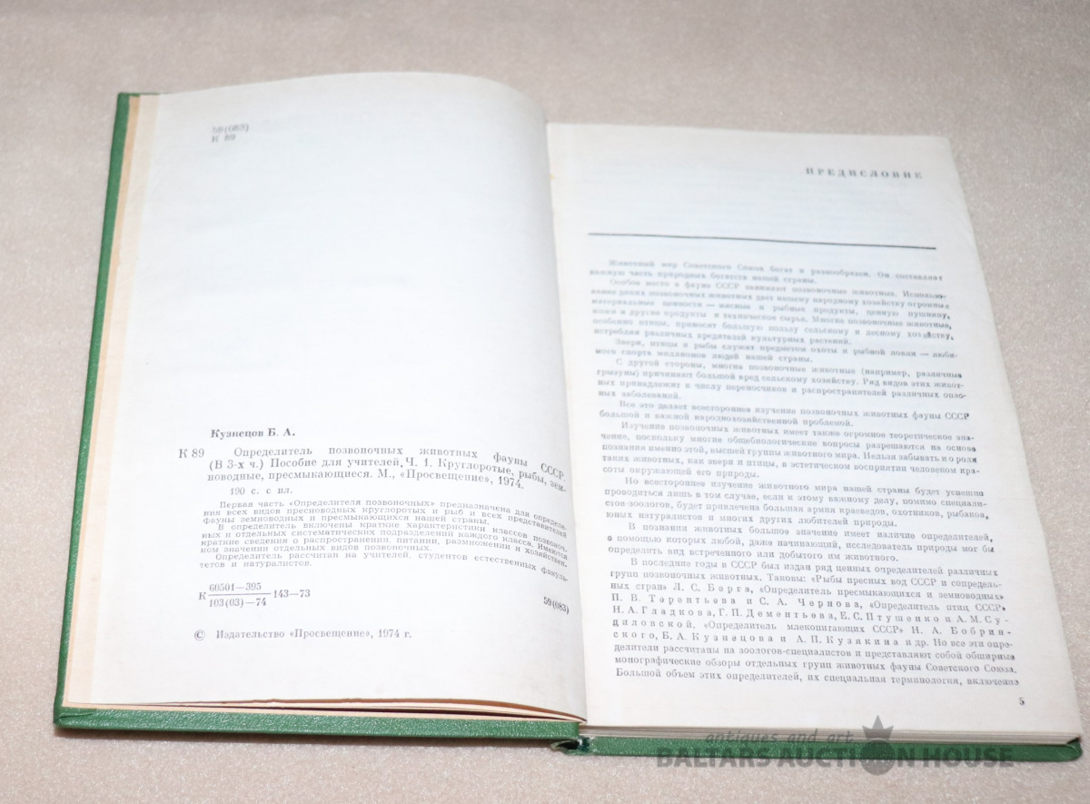 Определитель позвоночных животных фауны СССР, 1974. g. 1. daļa. Ar krāsainām ilustrācijām.