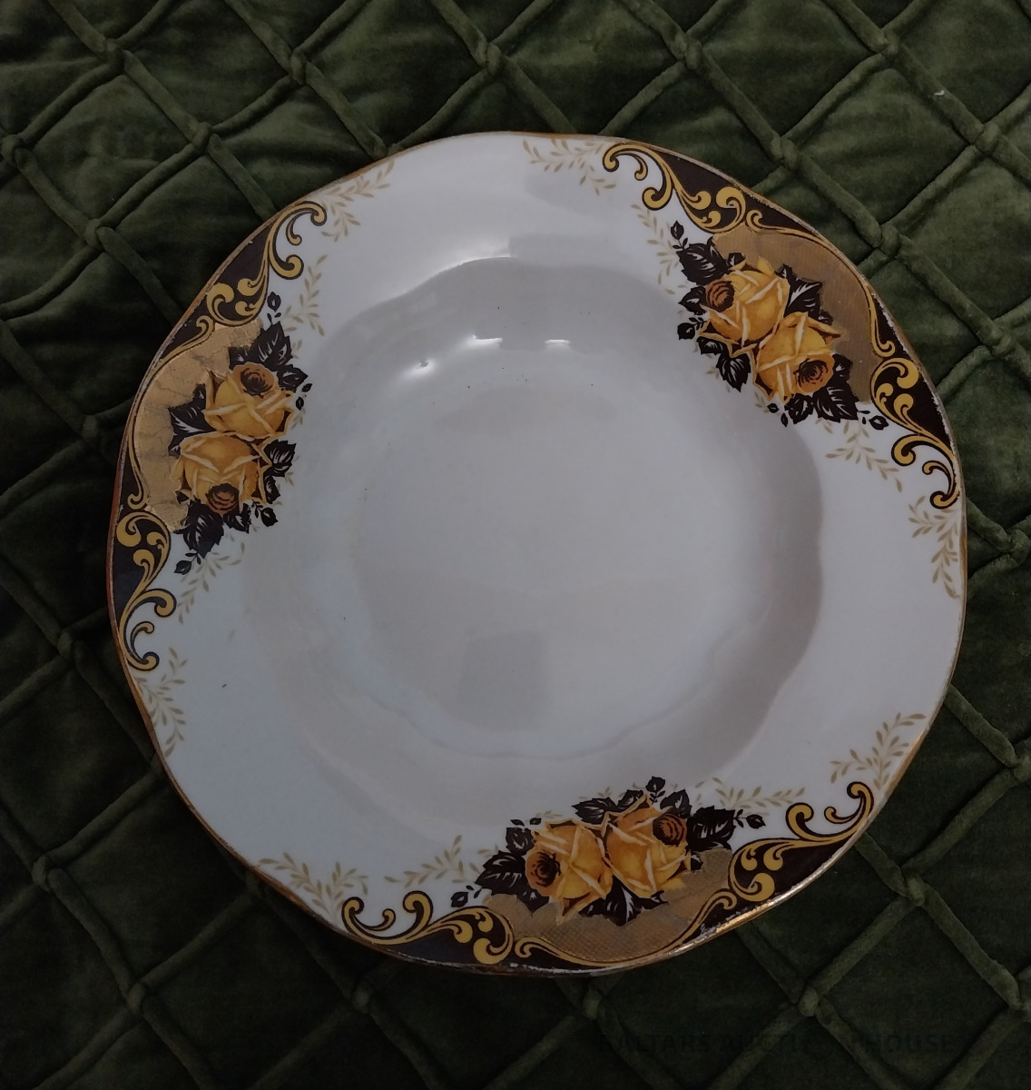 Divi reti dziļi RPR šķīvji, nelietoti. H ~ 5 cm. D - 24 cm. Zeltījums. 1 šķira- porcelāns. Latvija.