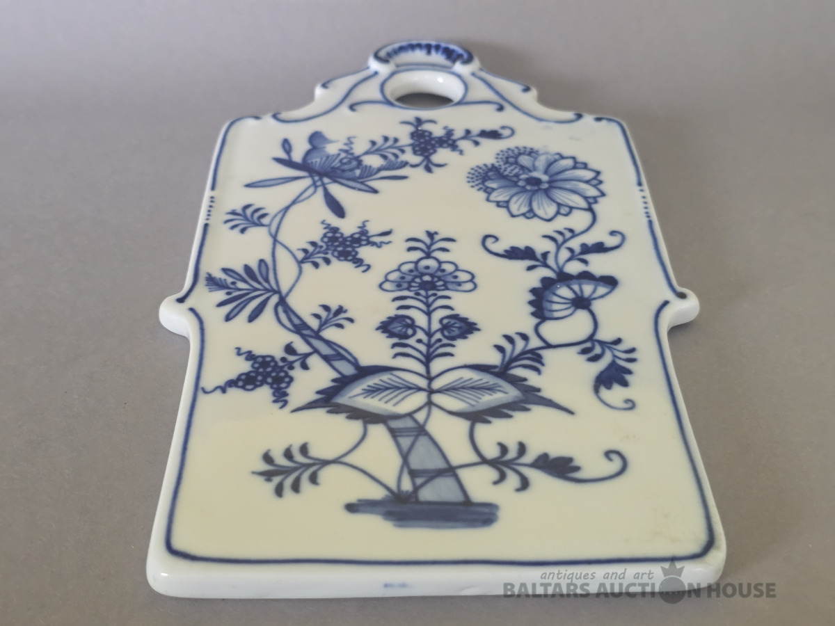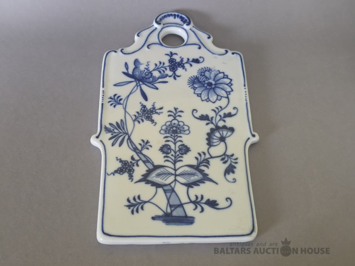 Antīks porcelāna siera dēlis. Meisen. 19 gs. Roku gleznojums. Kobalts.