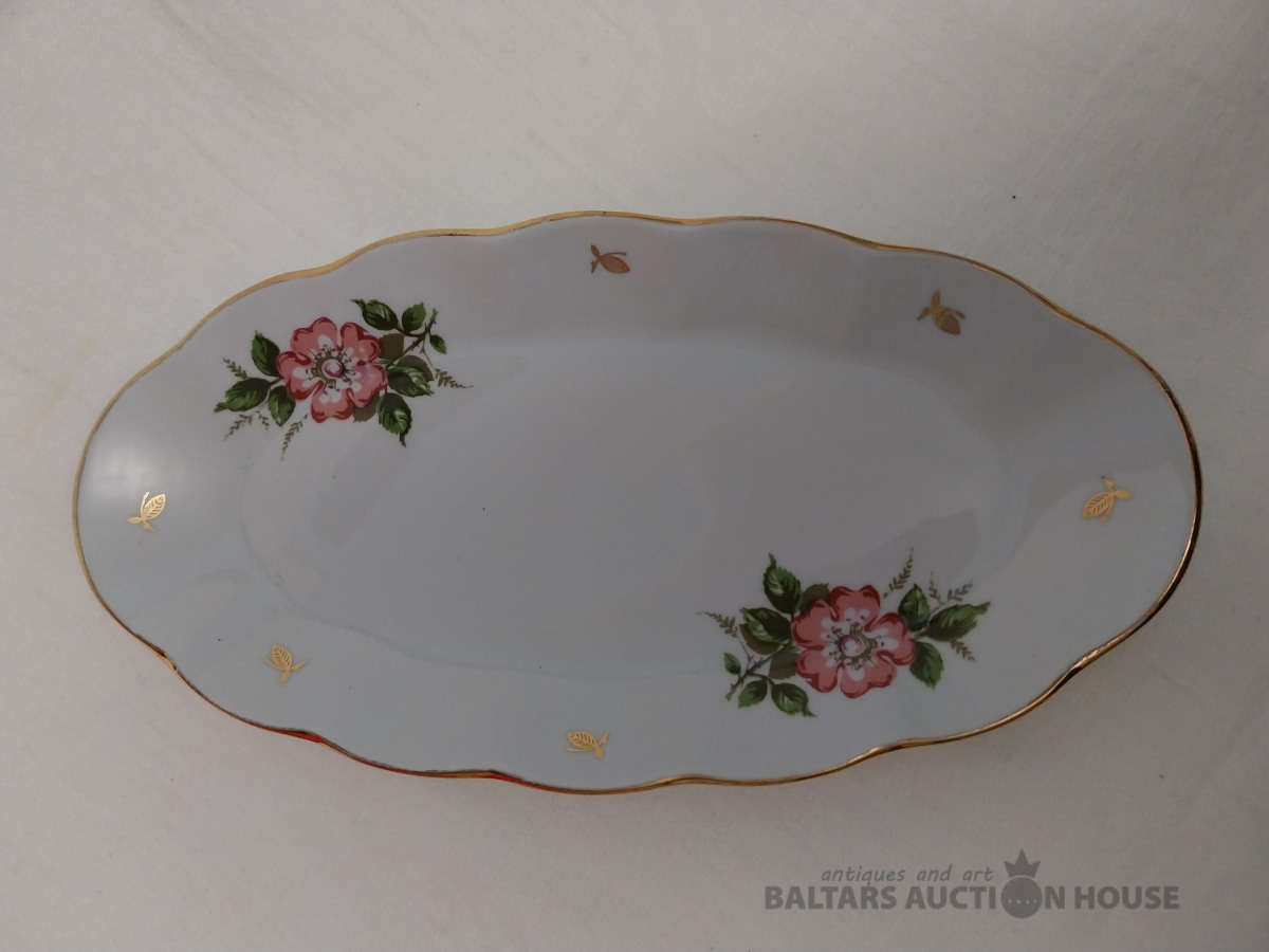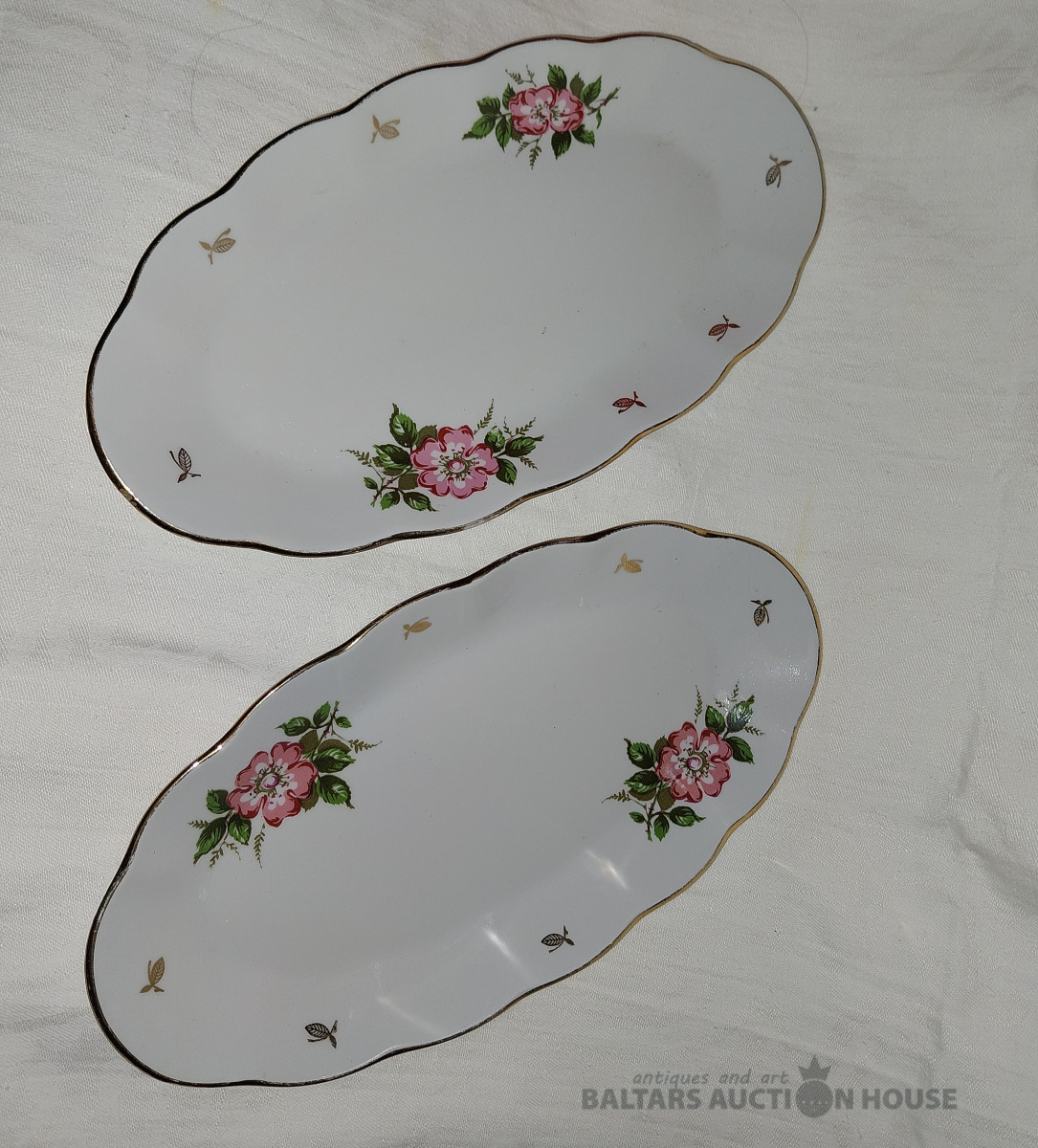 Divi servējami škivji RPR porcelāns. Zeltījums gar maliņu. Nelietoti. Izm: 31 × 16 cm.