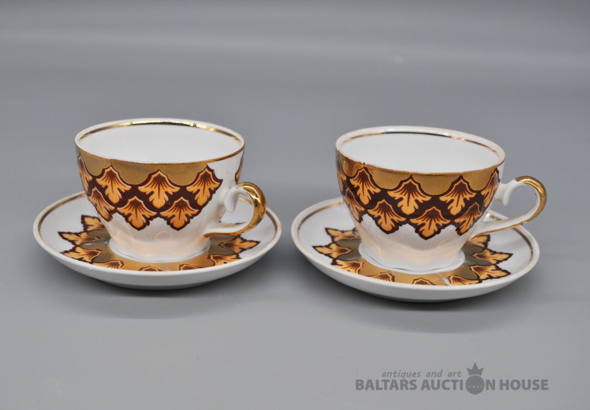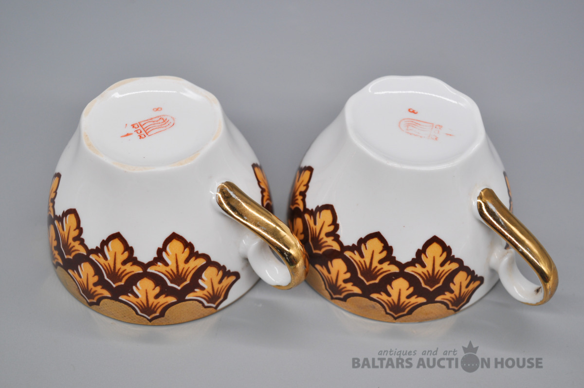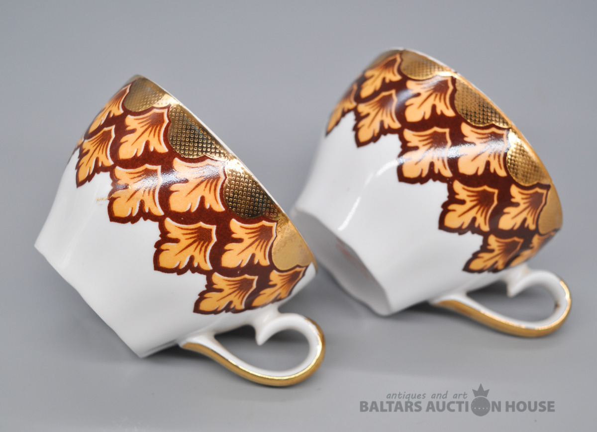Rīga. Porcelāna kafijas duo bez plaisām un nošķēlumiem. Dažviet noberzts krāsojums.
