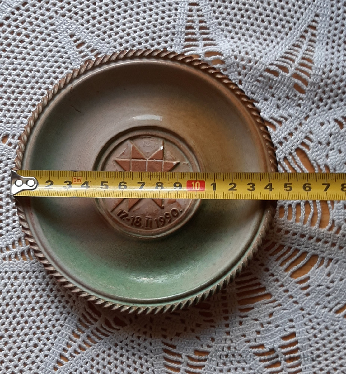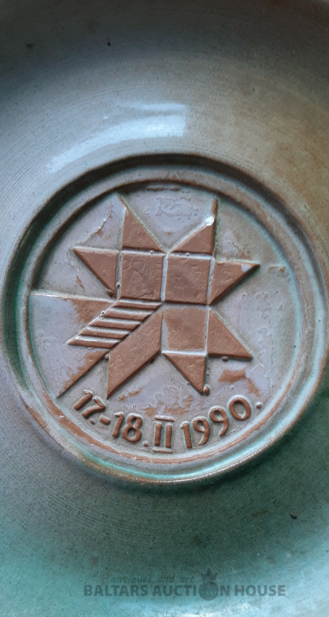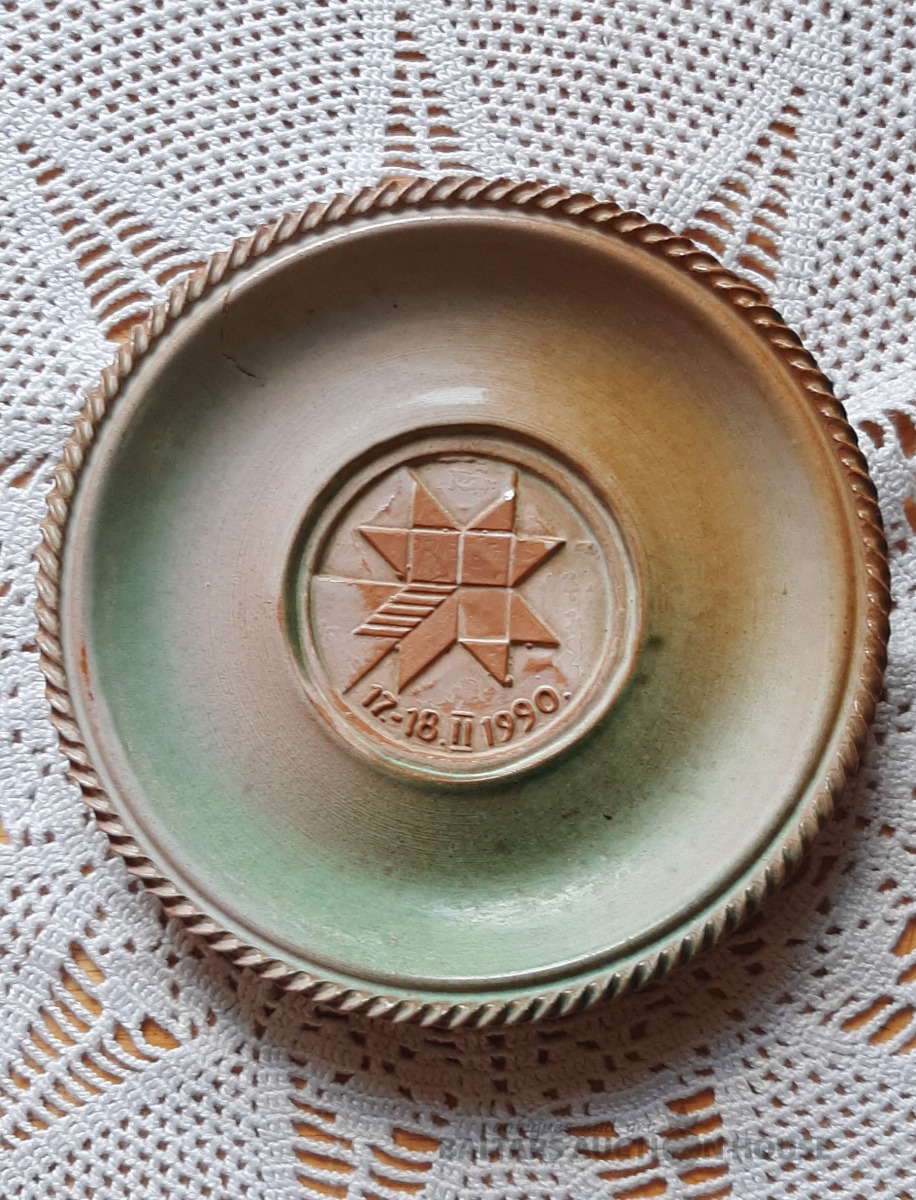 Šķīvīte, māls D=14,5 cm. Ir defekti,foto nr.5.-6.