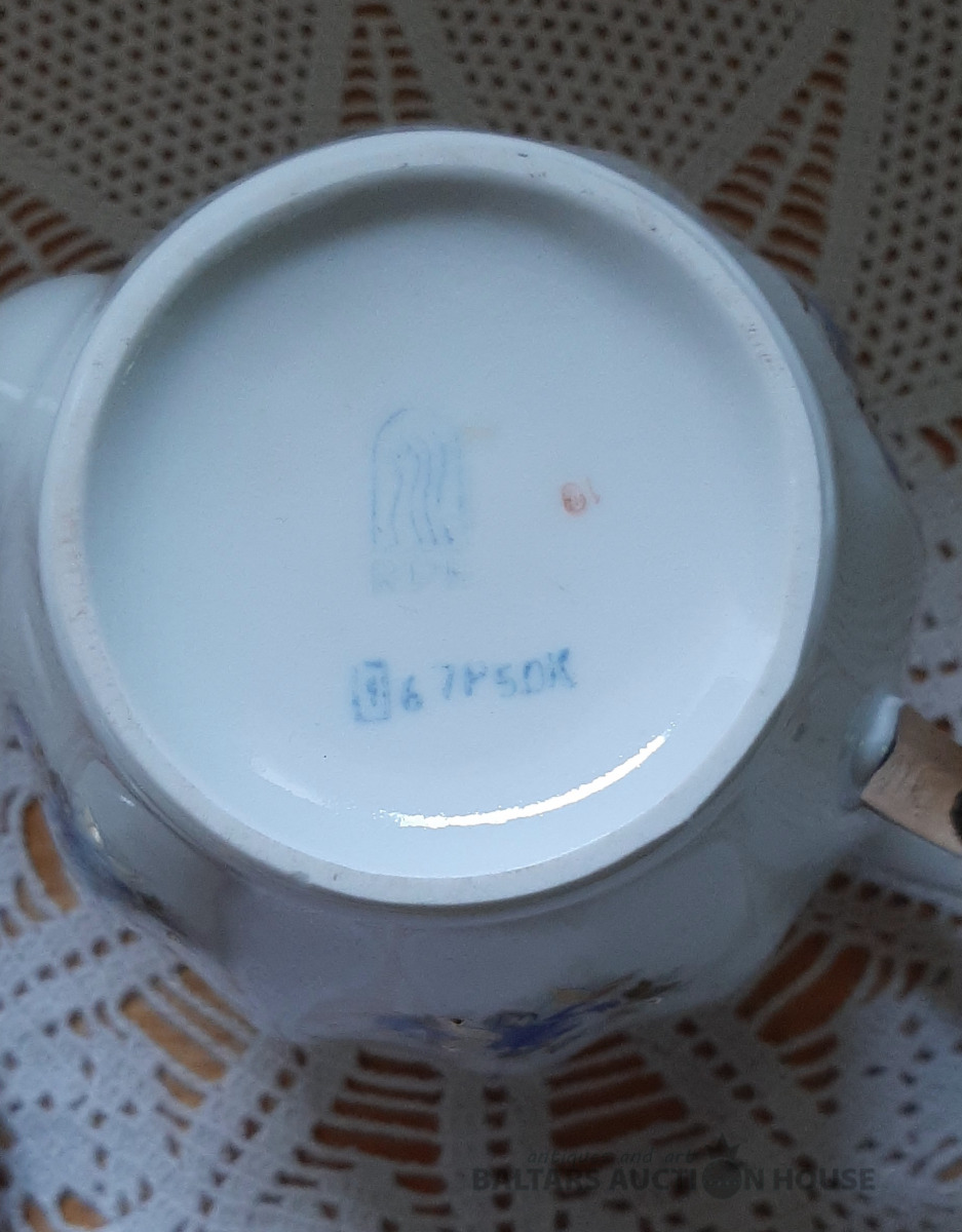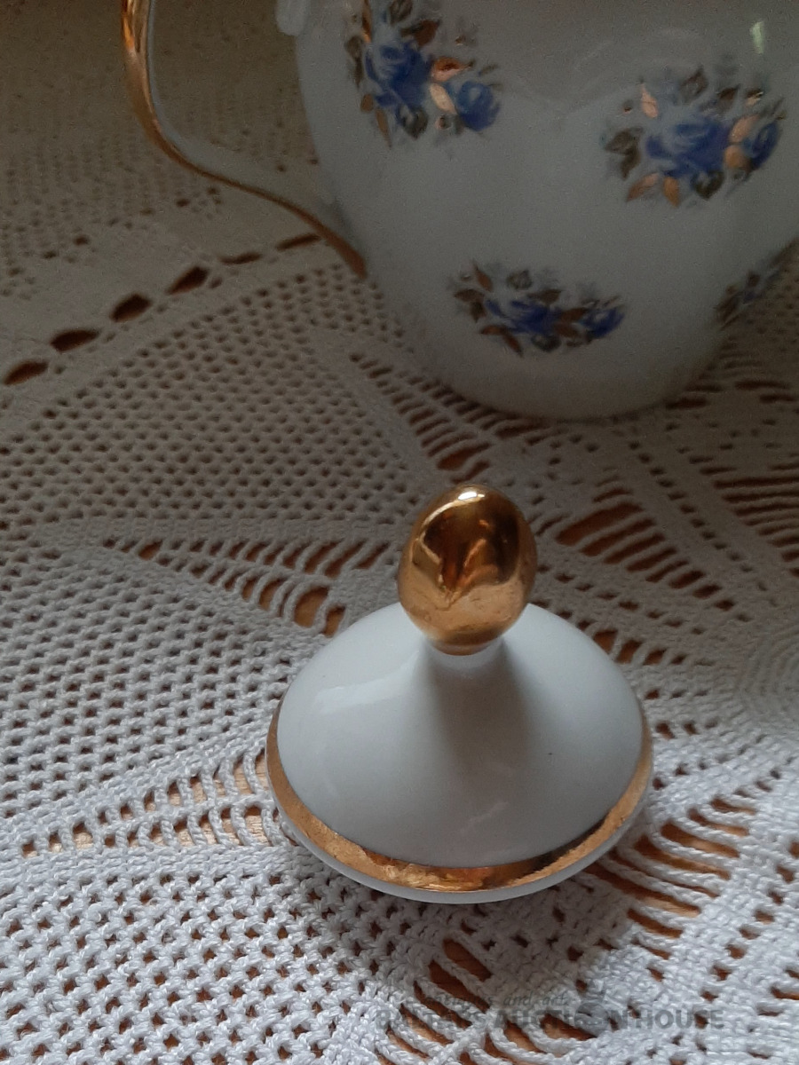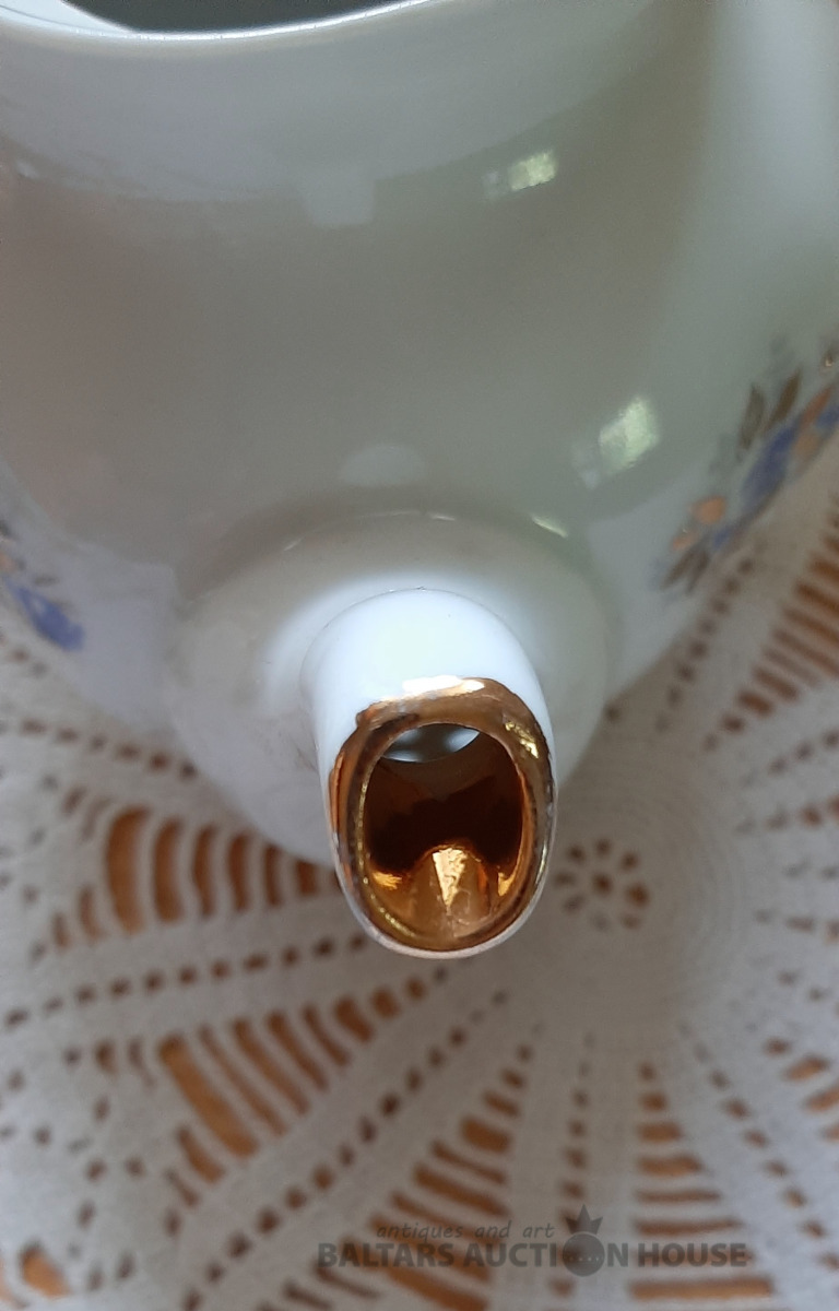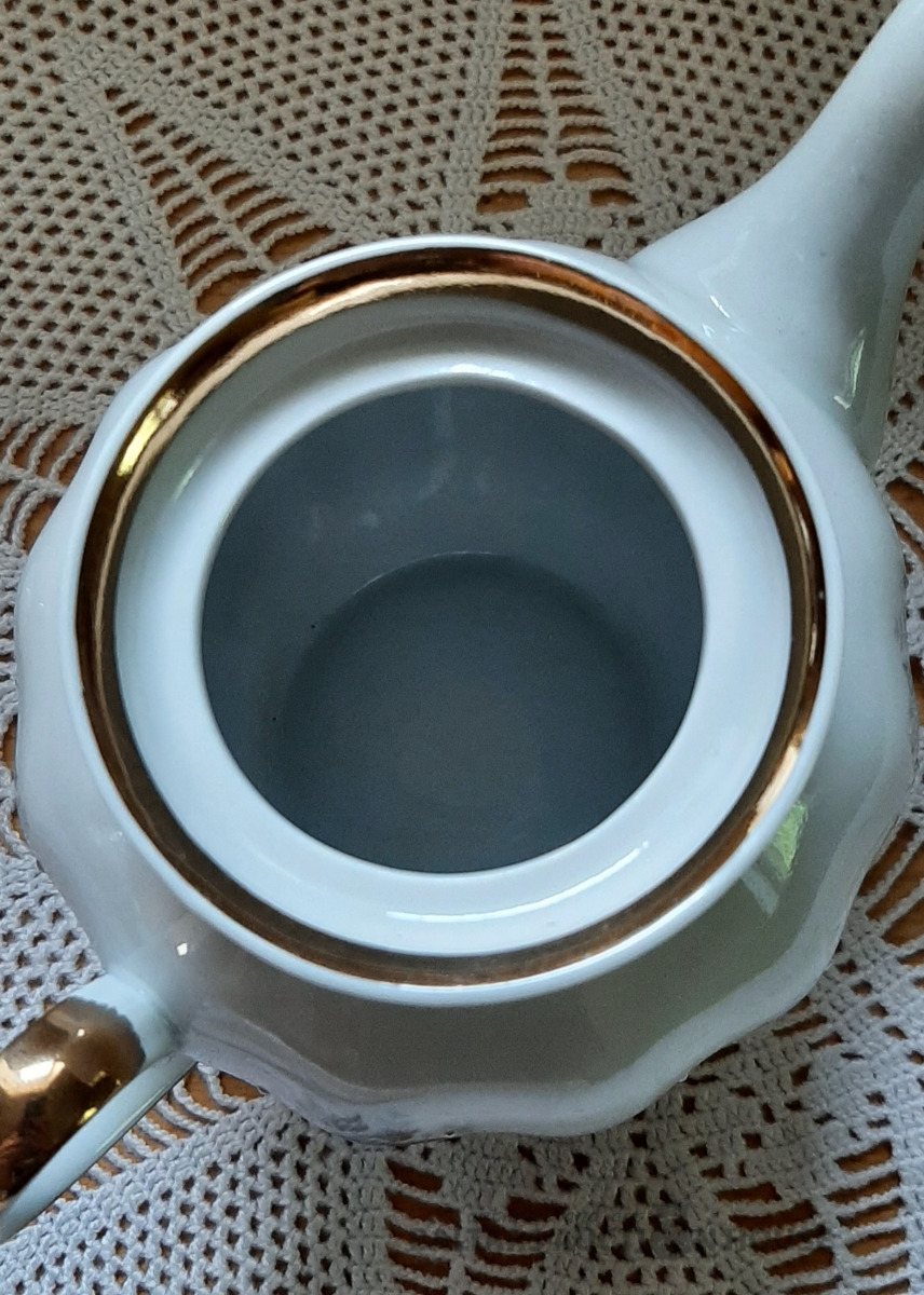 Tējkanna no "Siguldas" tējas servīzes, zelta krāsā, labā stāvoklī. Ir neliels ražošanas defekts,foto nr.6. H=15 cm.