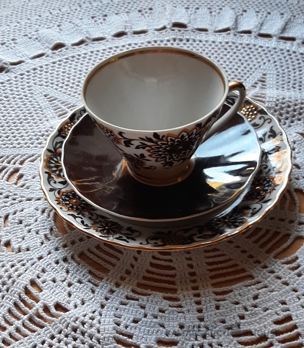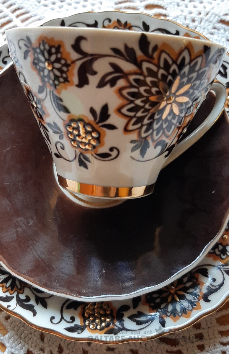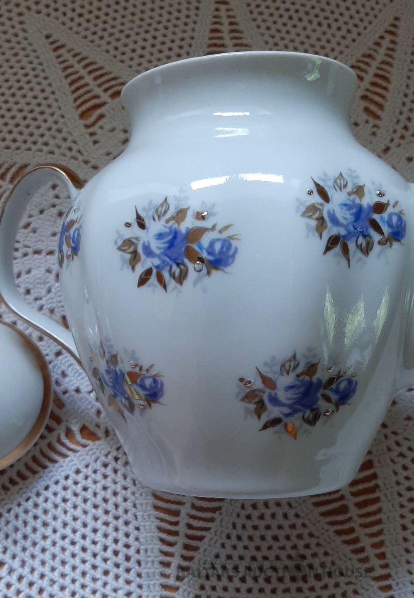 Tējkanna no "Siguldas" tējas servīzes, zelta krāsā, labā stāvoklī. Ir neliels ražošanas defekts,foto nr.6. H=15 cm.