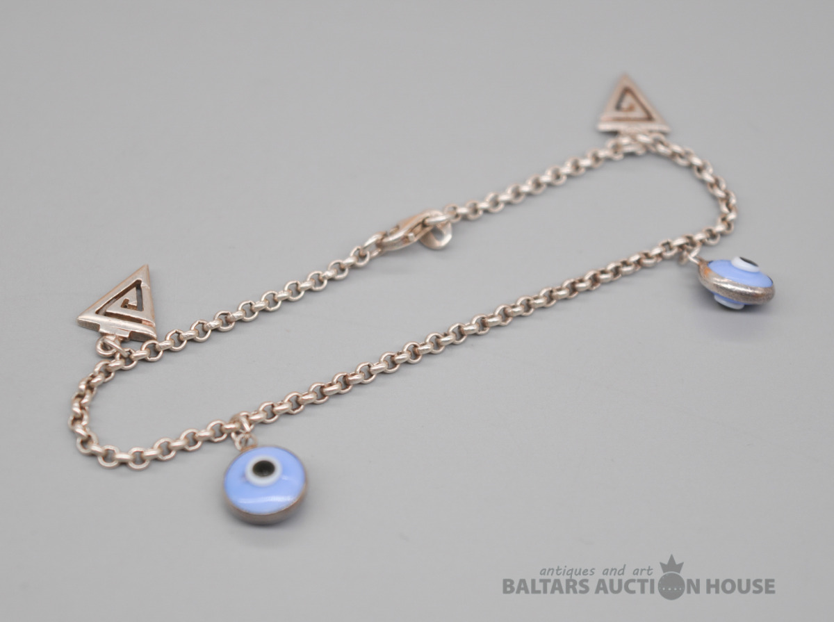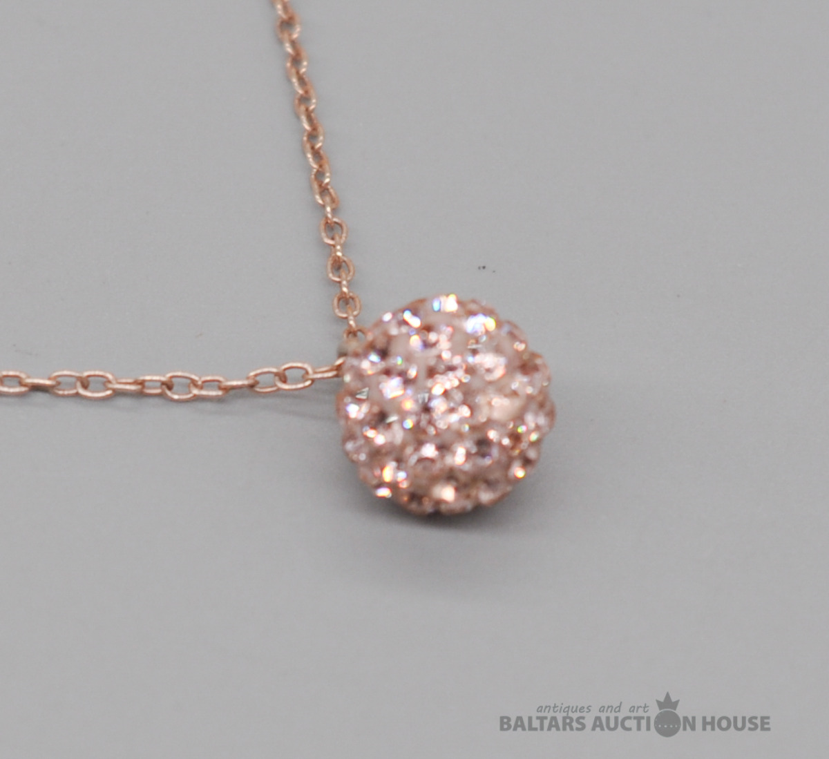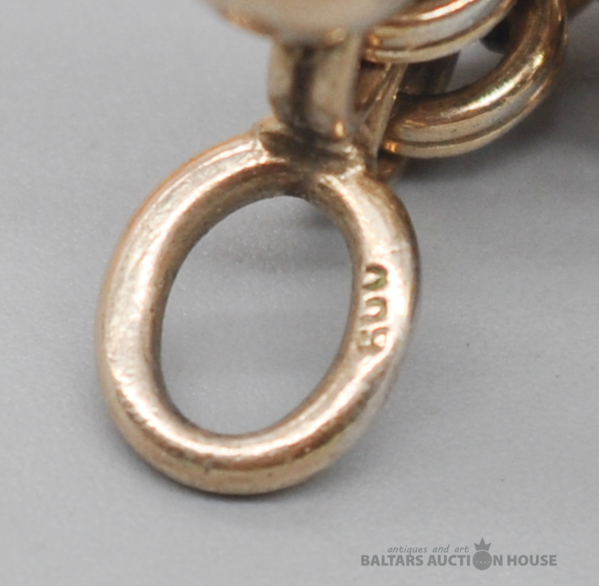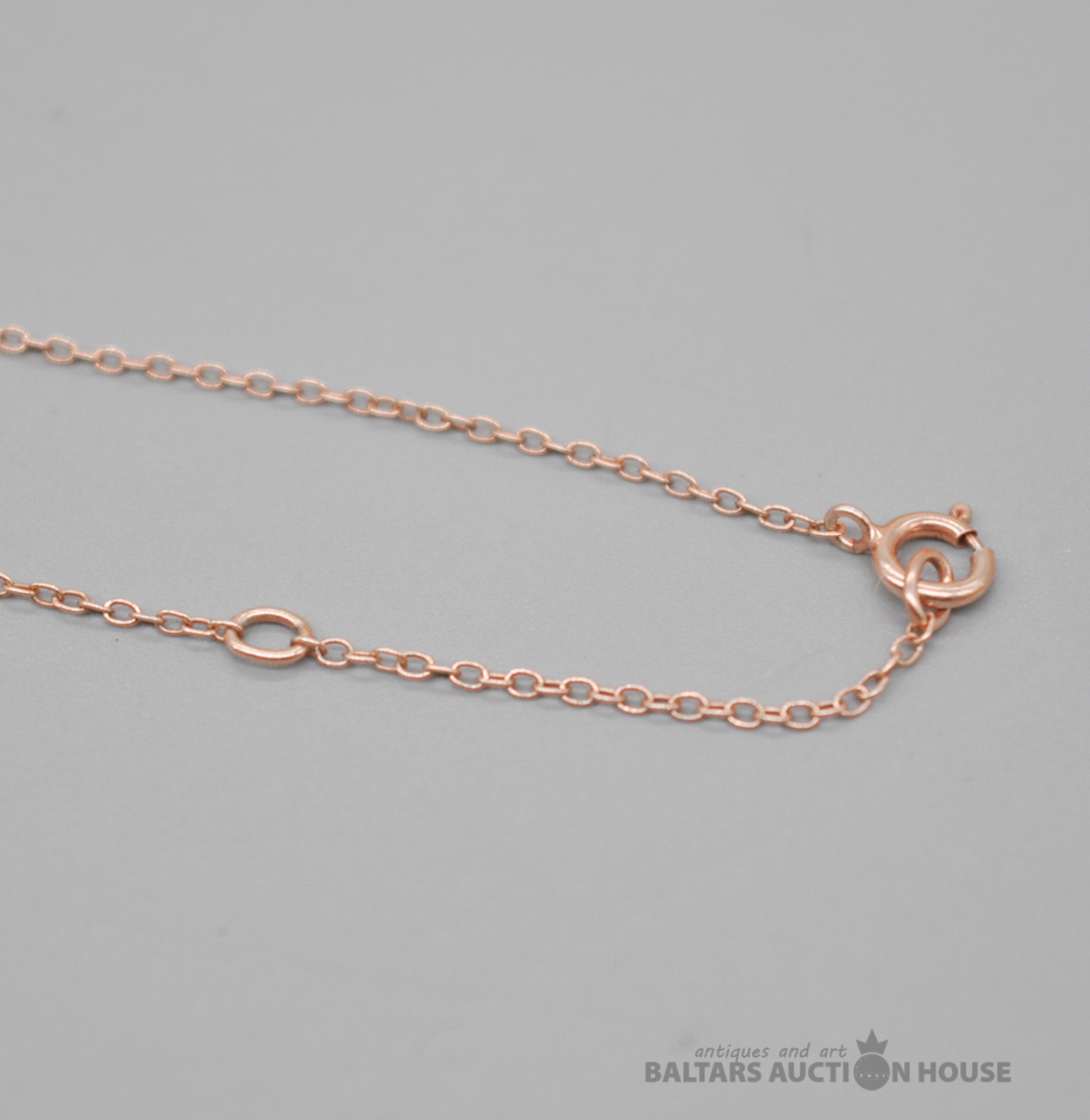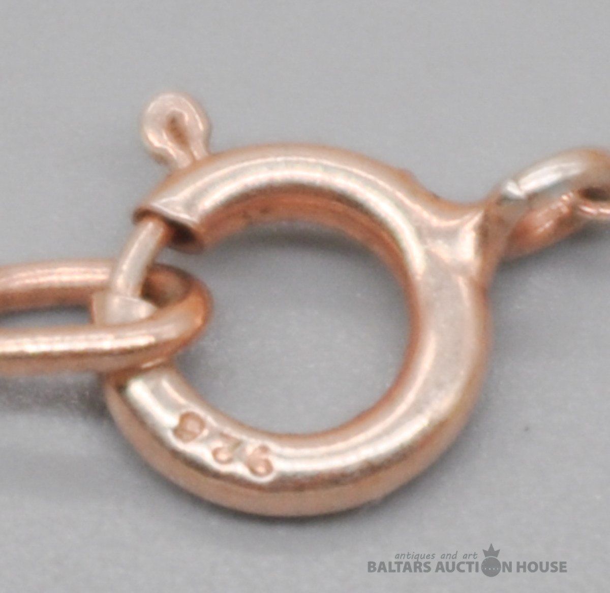 Smalka sudraba kaklarota ar piekariņu. Rozā zeltījums. Svars 1.4 grami. Garums 45 cm.