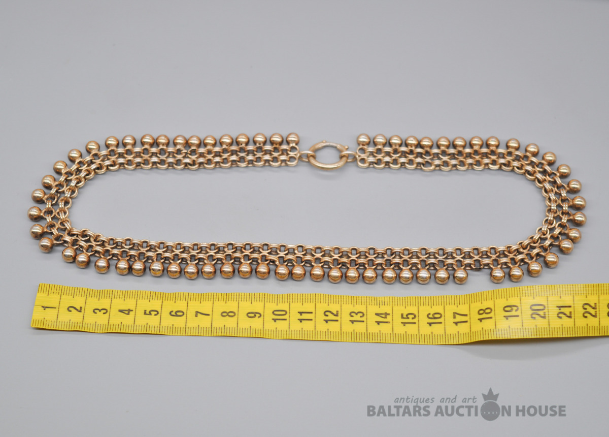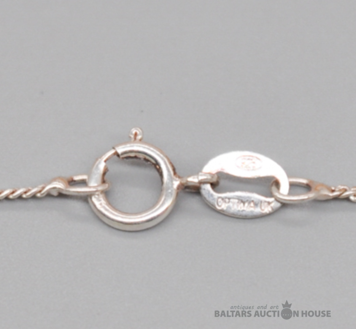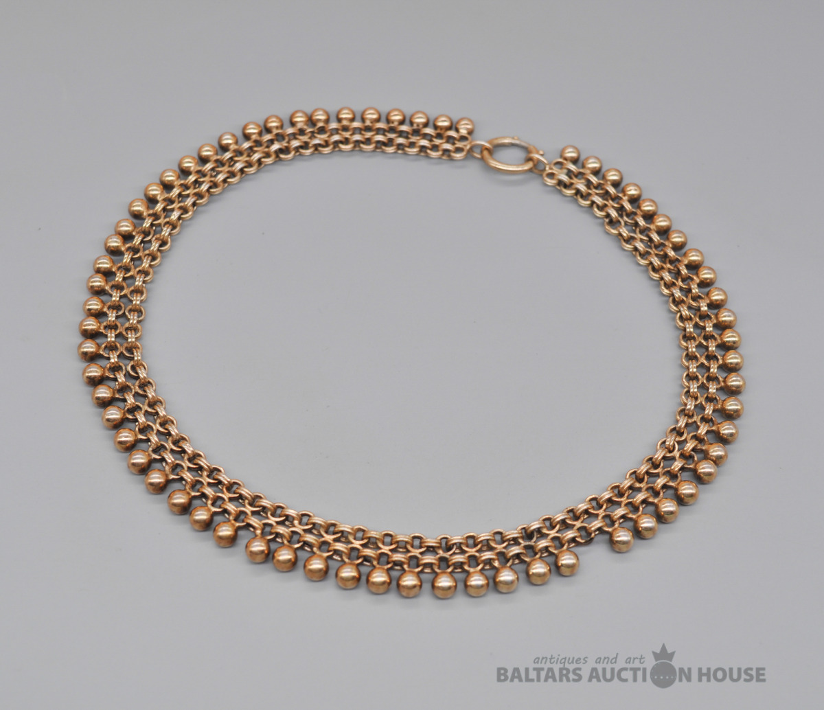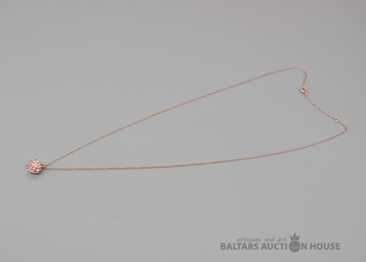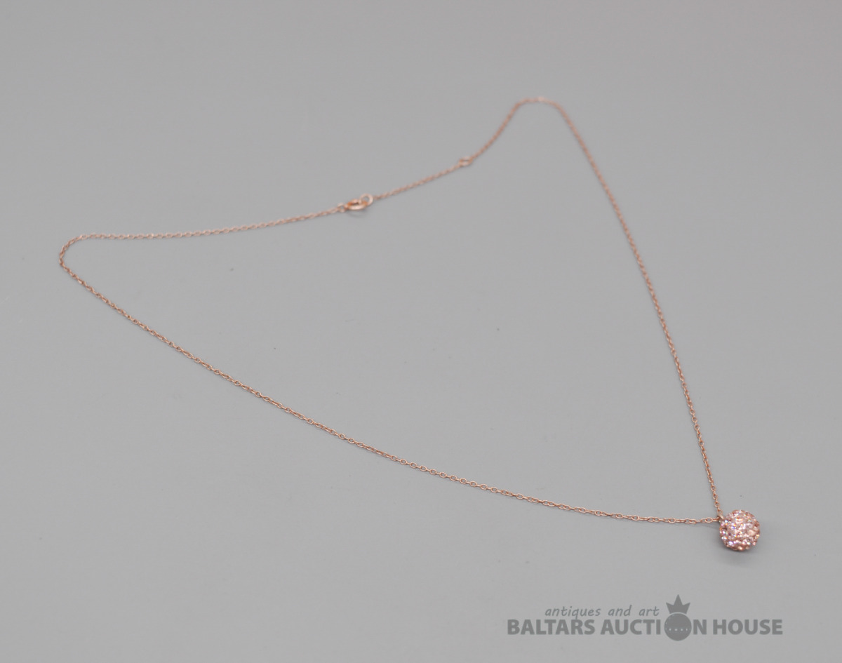 Smalka sudraba kaklarota ar piekariņu. Rozā zeltījums. Svars 1.4 grami. Garums 45 cm.