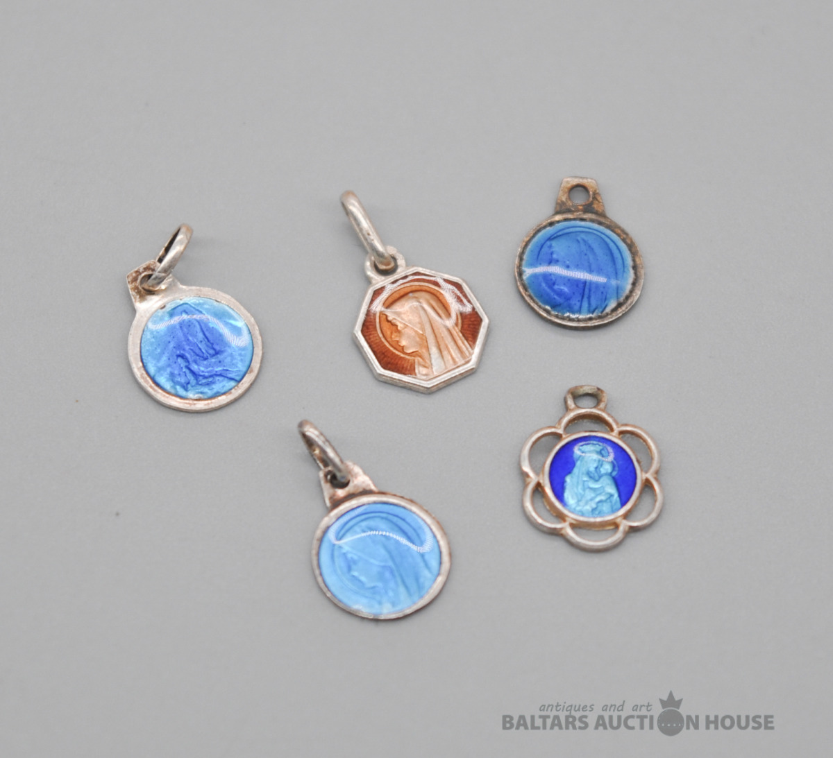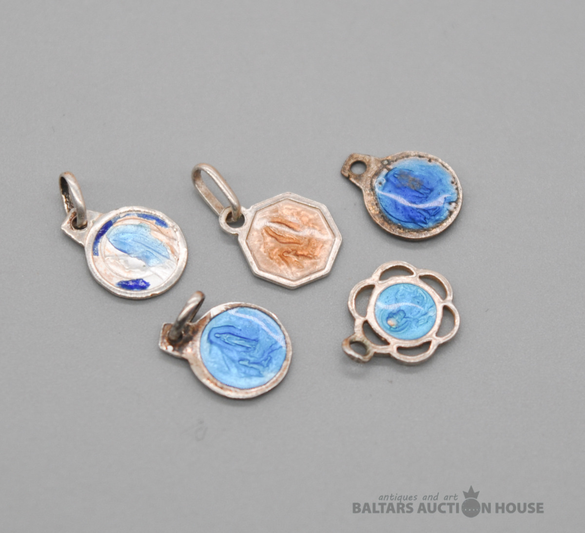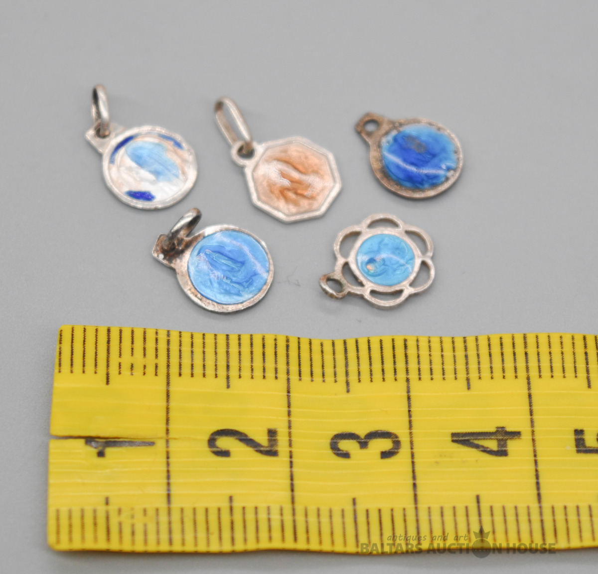 Sudraba piekariņi ar emalju. Reliģioza tematika. Svars 1.6 grami.