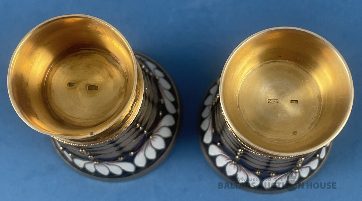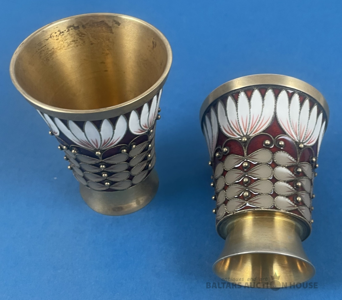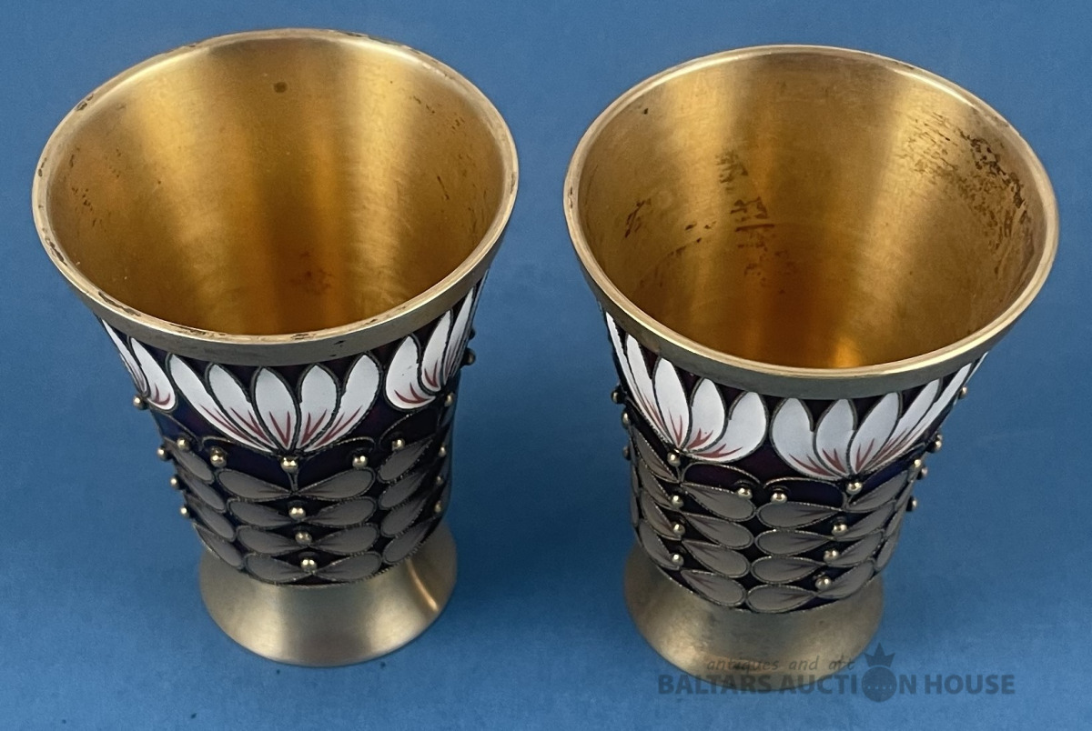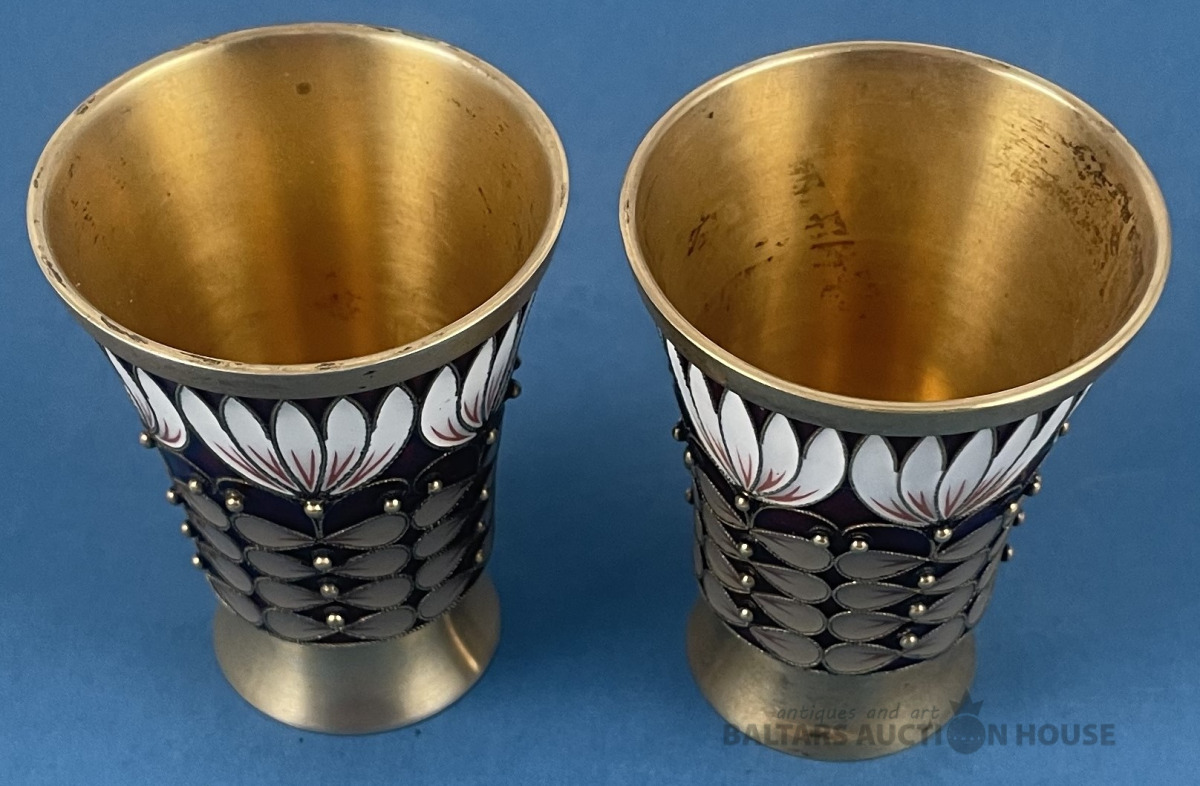Glāzes 2 gab. Sudrabs 925, emalja. Svars 169,93 g. h=6,5 cm. d=5 cm