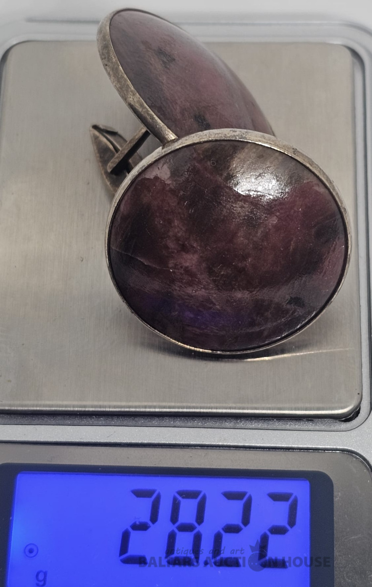 Sudraba aproču pogas, lielas (.925), Dabīgs akmens