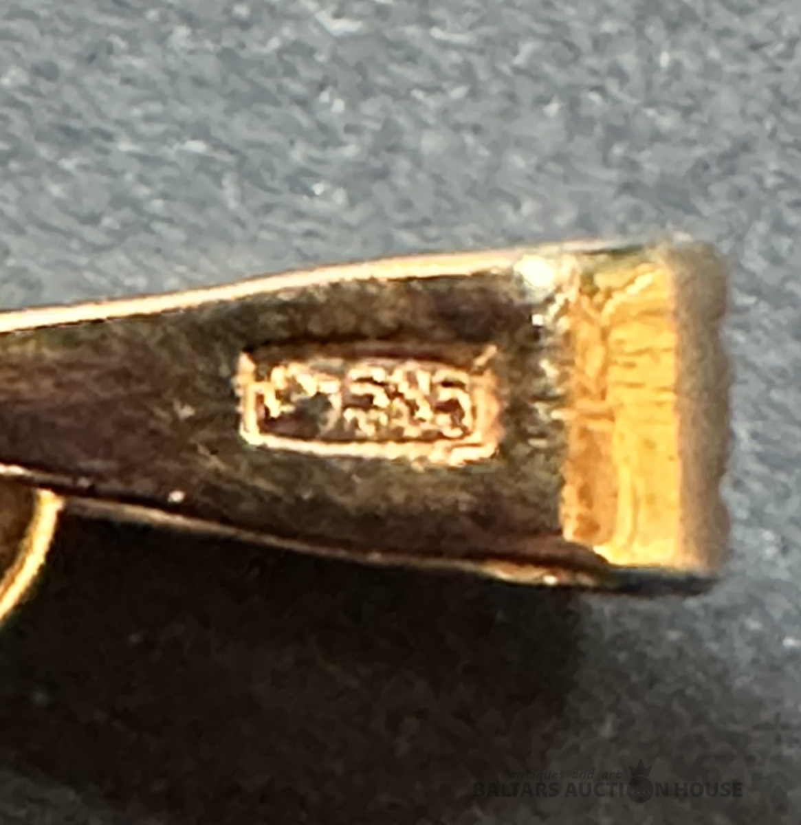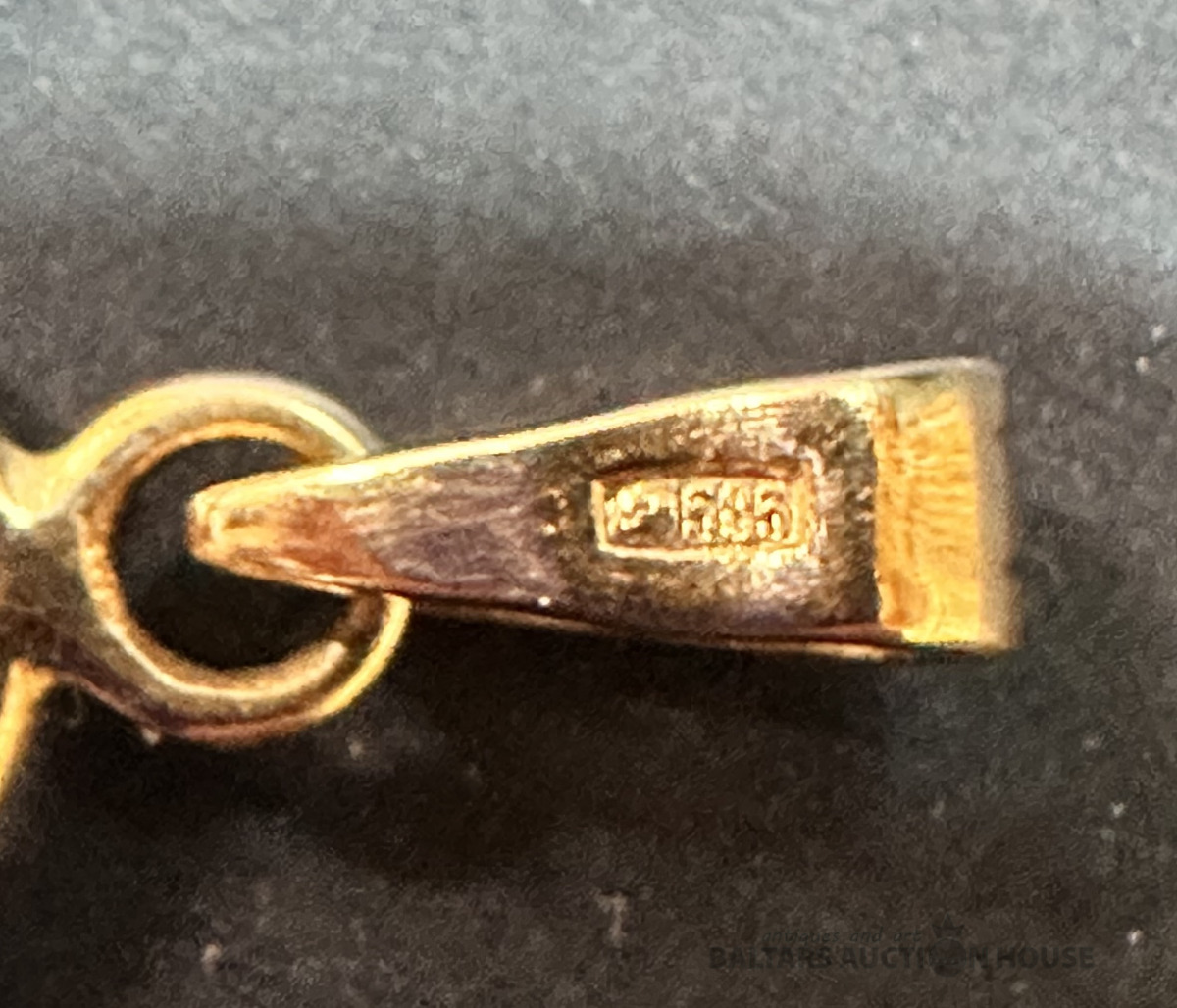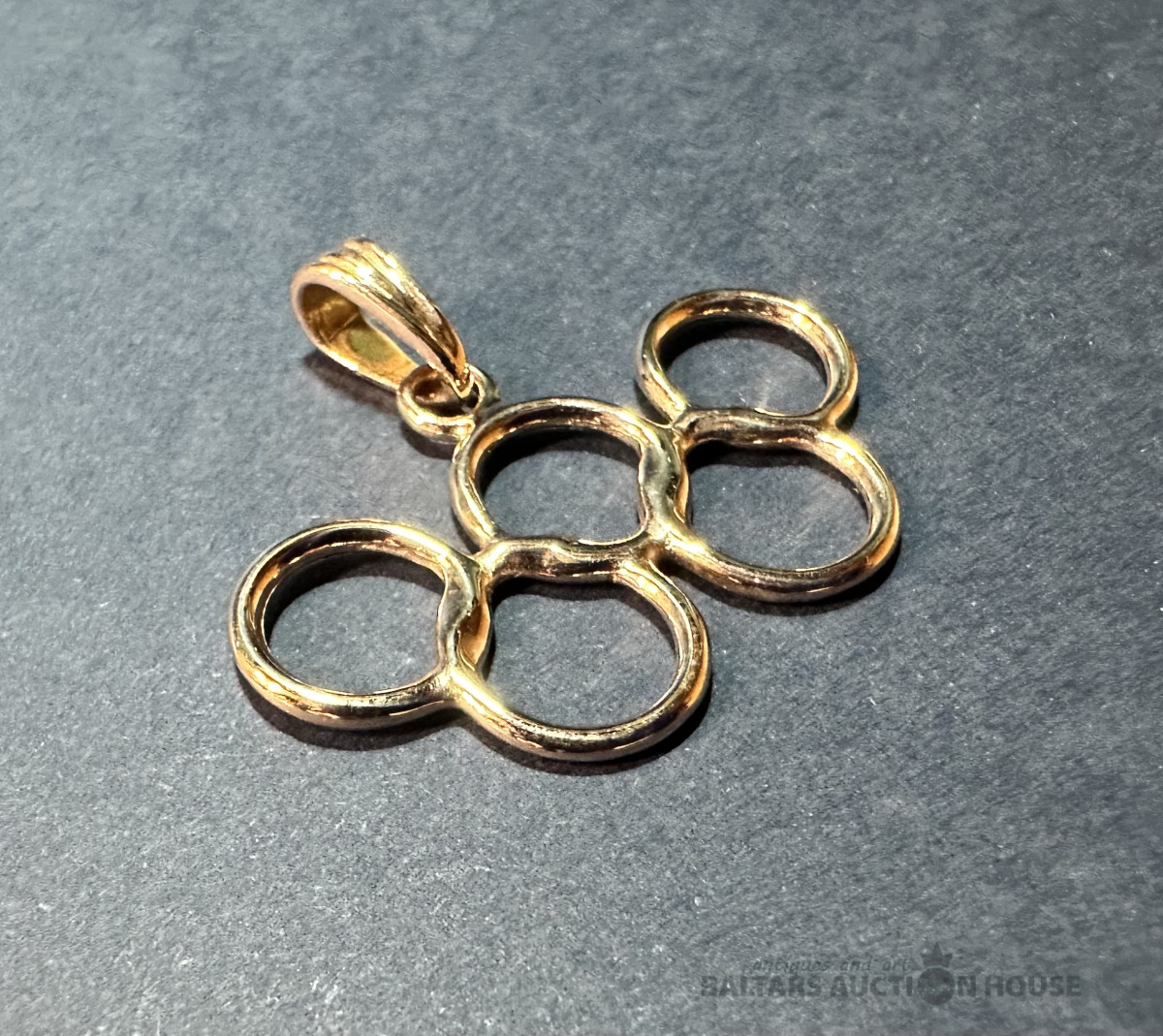 Kulons OLIMPISKIE APĻI, 585, 3.73 grami, viena eksemplāra roku darbs, lielums 30x35 mm, Latvijas proves zīmogs ar Mildu, izgatavots 1990-tie, nevalkāts.