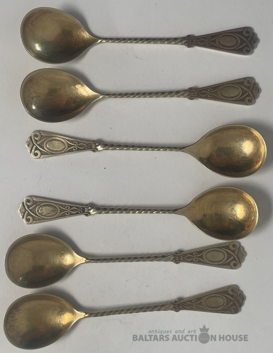 Karotes 6 gab., sudrabs 875, zeltījums, svars=57,85 gr.