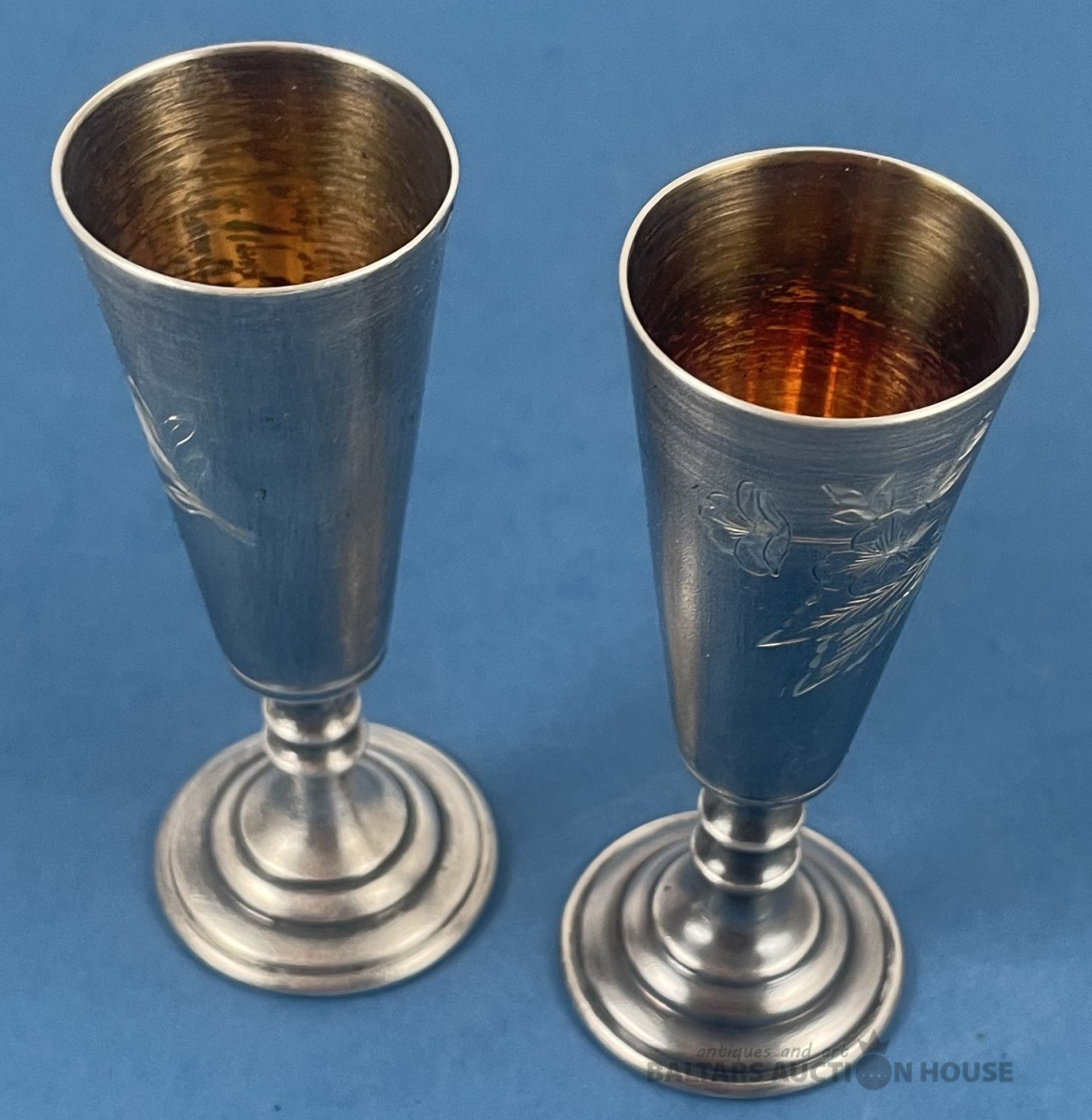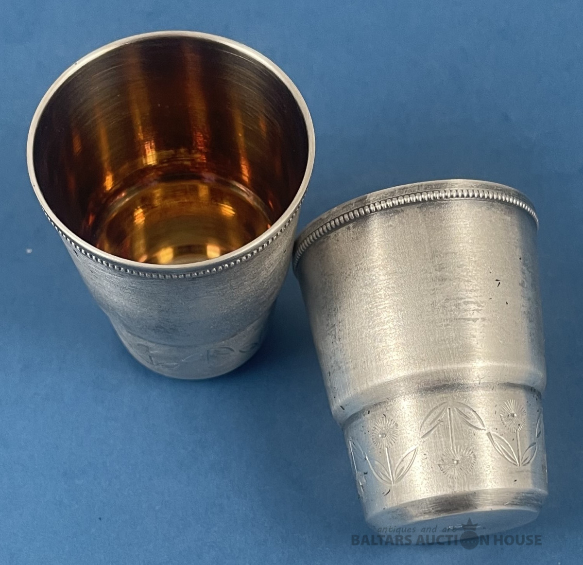 Glāzes 2 gab. Sudrabs 875. Svars 61,05 g. h=8,6 cm. d=3 cm