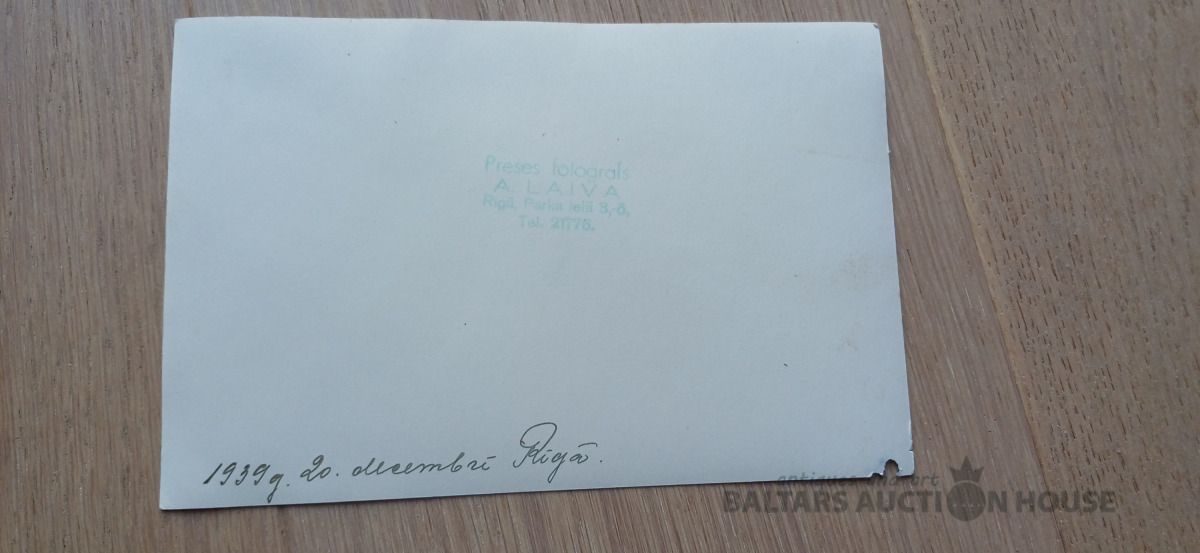 Preses darbinieku (?) grupas foto 1939. g. 20. dec. Rīgā. / Aizmugurē zīmogs: Preses fotografs A. Laiva.