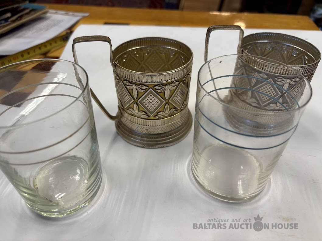 2 oriģinālas glāzes vieglmetāla glāžu turētājos.H=11,5 cm