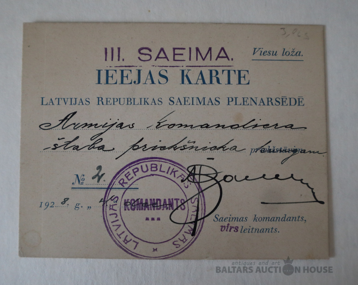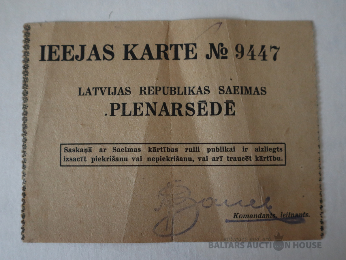 Ieejas karte Latvijas Republikas Saeimas plenērsēdē, 1928. gads.