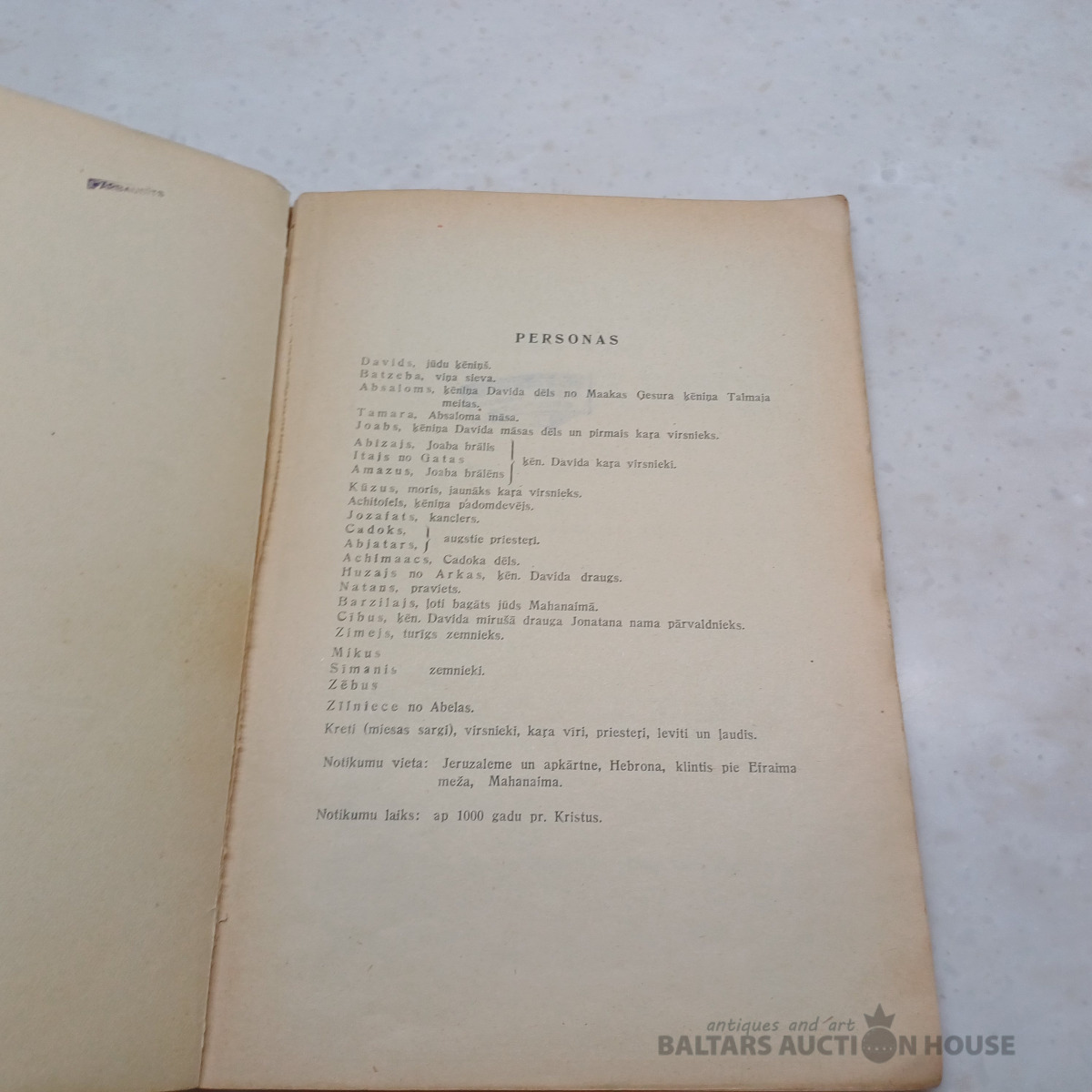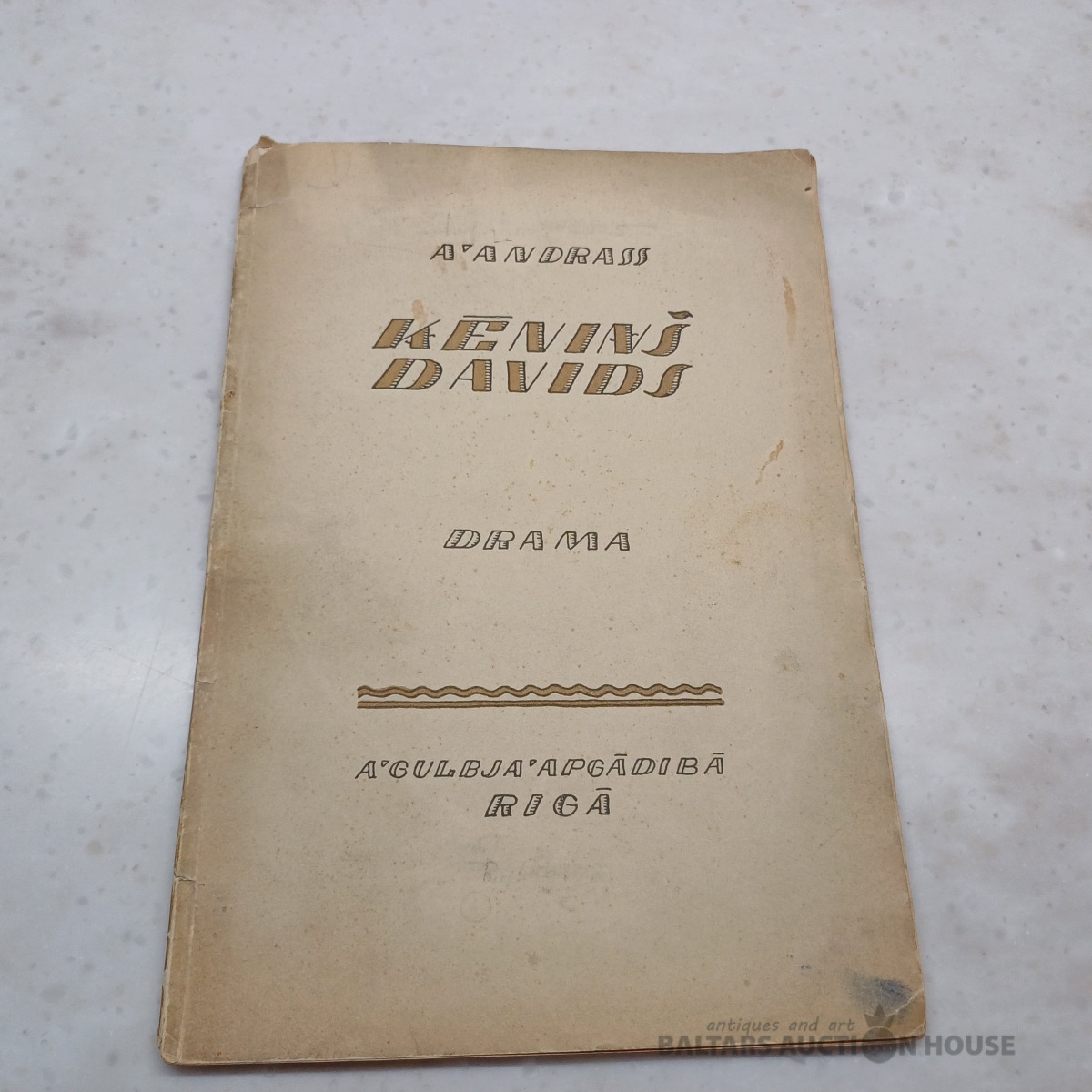 Ķēniņš Dāvids. Vāku zīm Jaunsudrabiņš. Ar zīmogu "Misiņa bibliotēkas grāmata". Bez titullapas