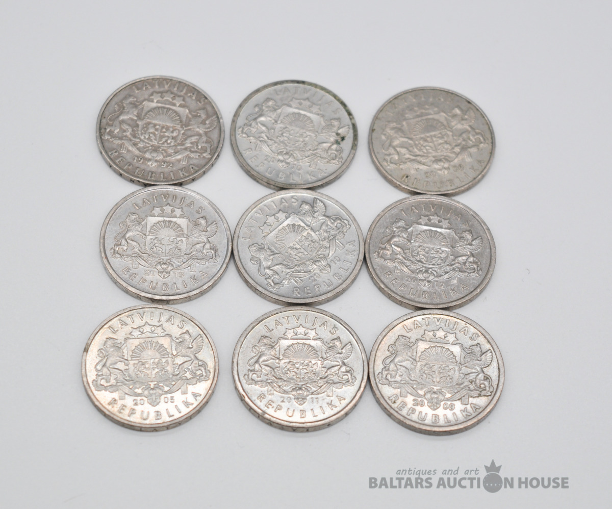 Dažādas latu monētas. 9 gb.