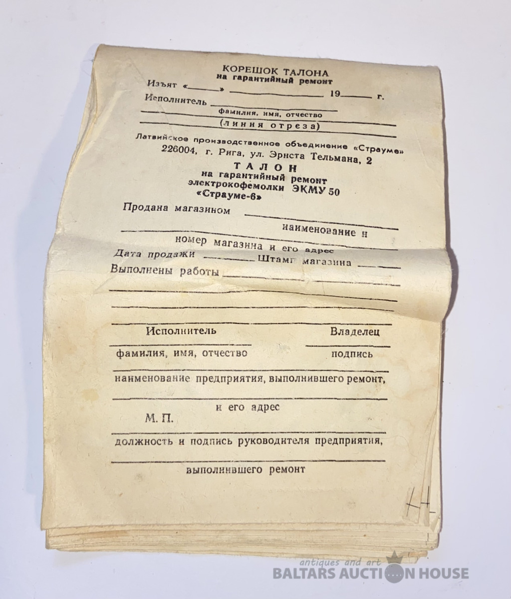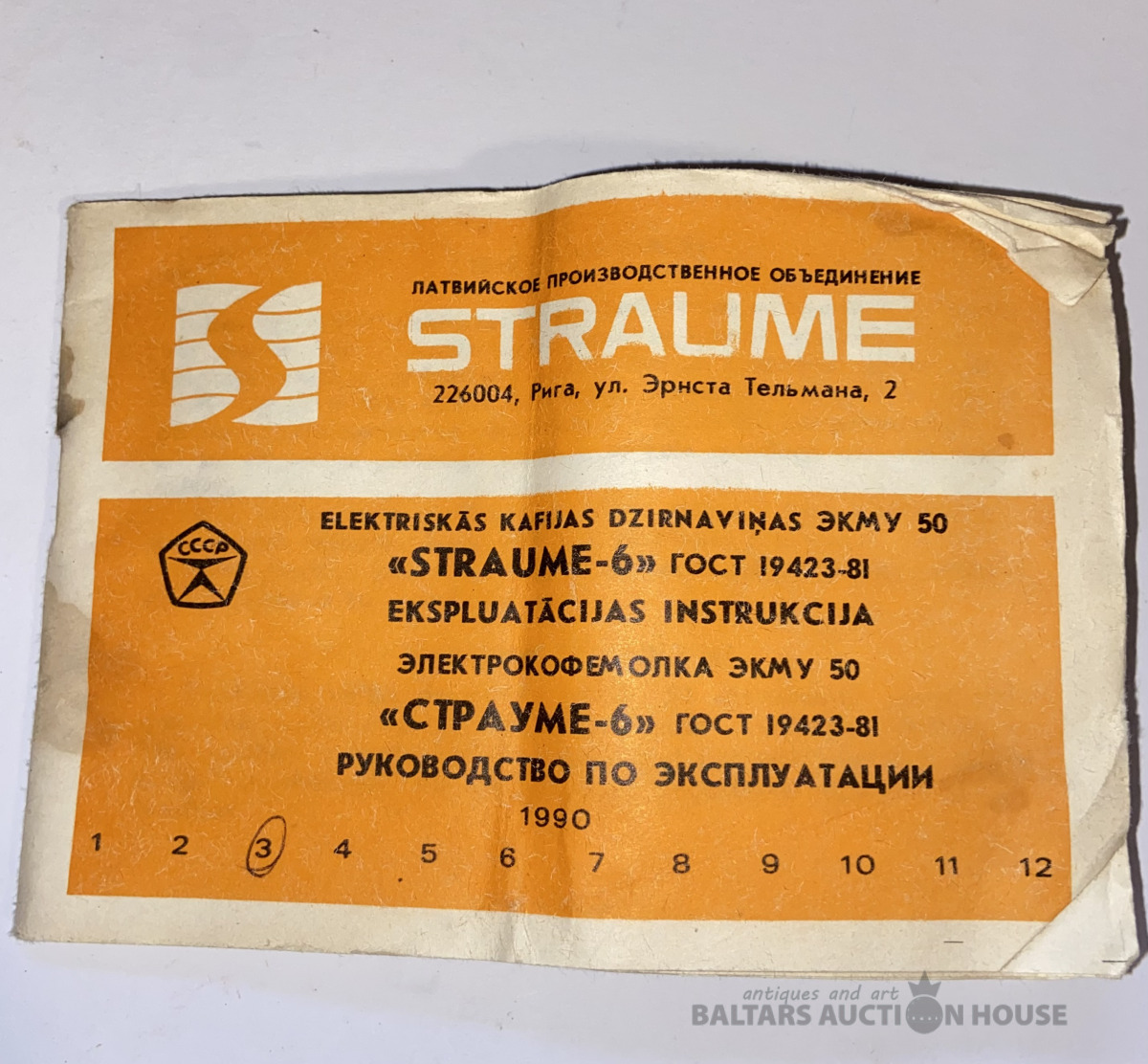 Elektriskās kafijas dzirnaviņas STRAUME-6. Darba kārtībā. 1990.gads