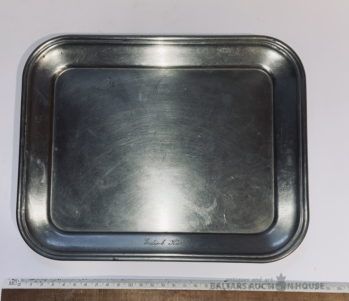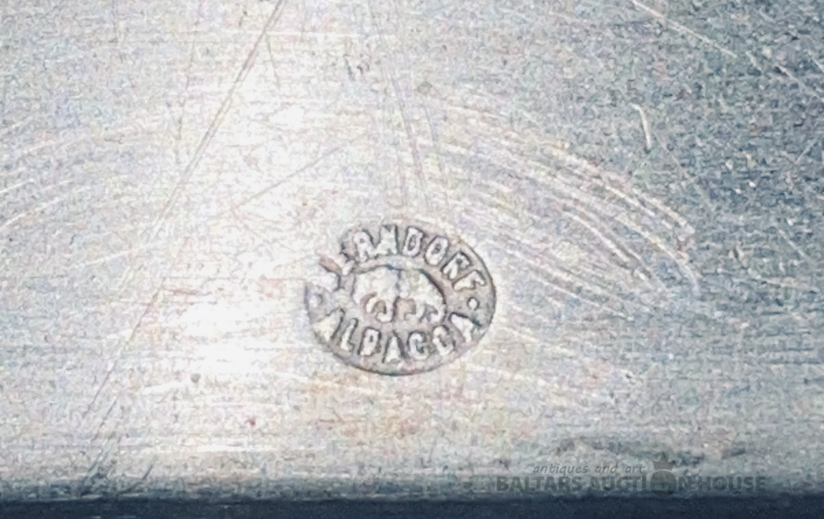 Paplāte 27 cm x 21,5 cm. “ Kurhaus EDINBURGH” ( Dzintari,Jūrmalā). 1920.-1930.gg. Ir zīmogs: Berndorf Alpacca ( A.Krupp.)