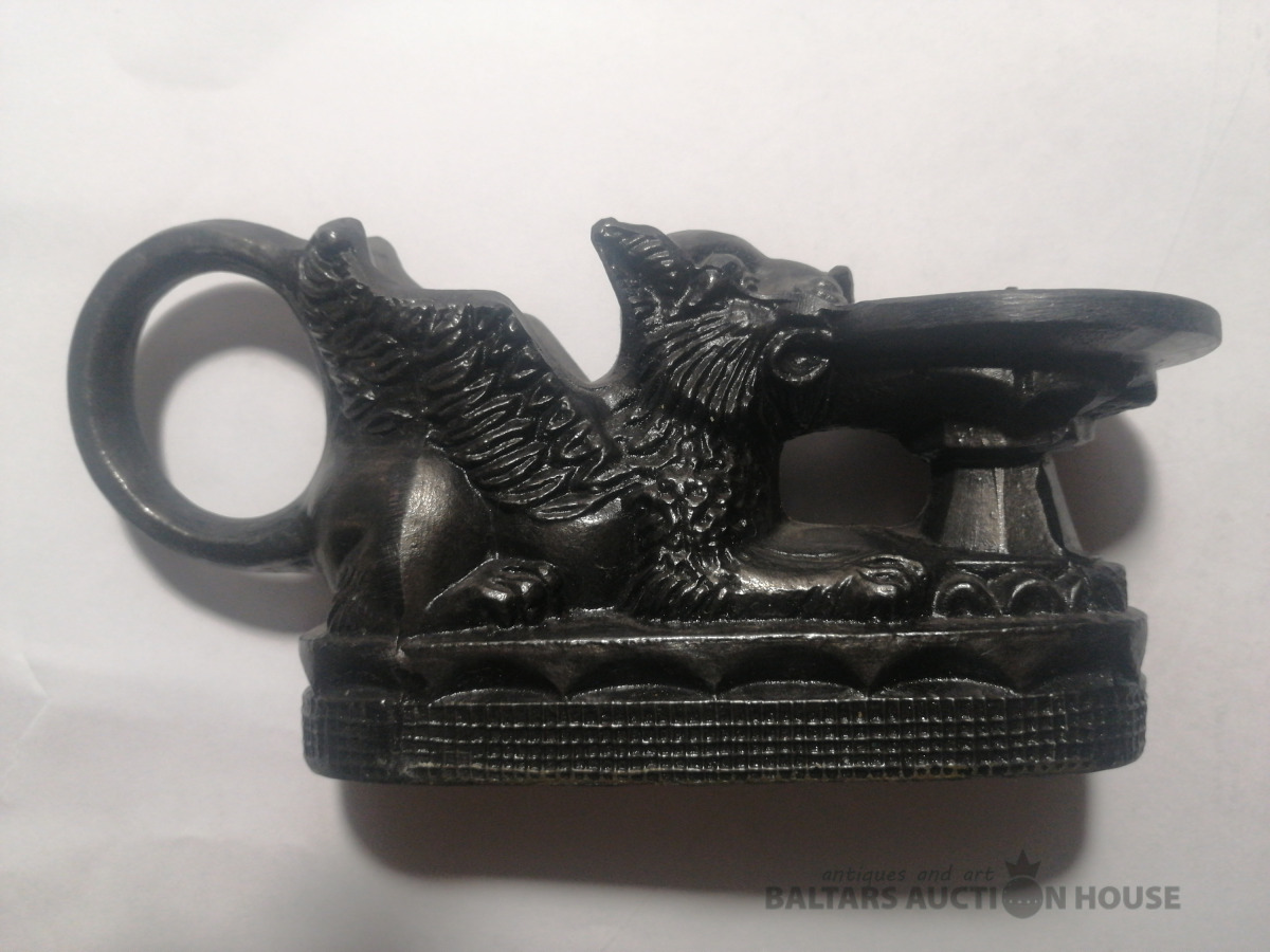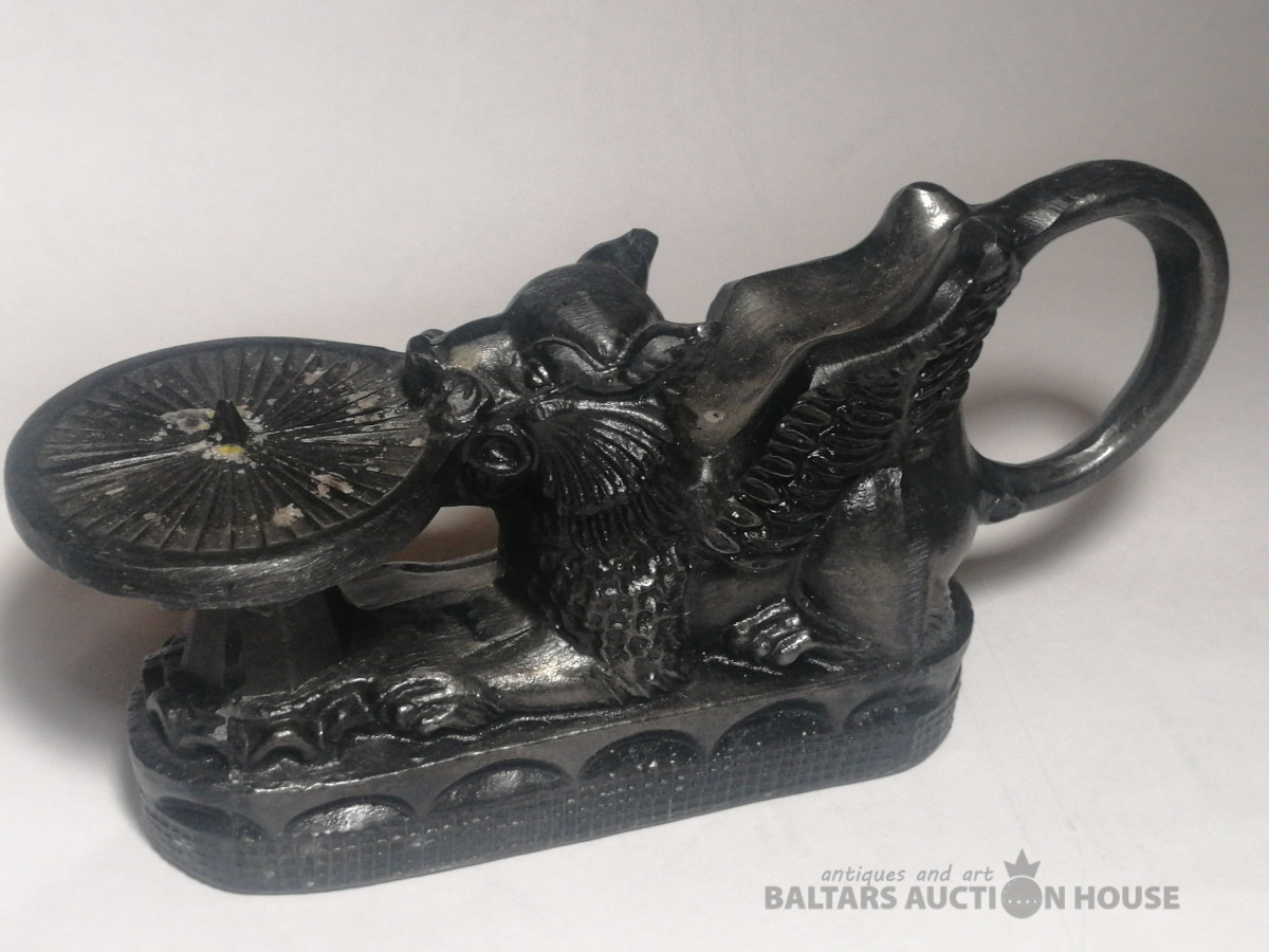Svečuturis “Drakons”, čuguna māksliniecisks lējums, svars 550 g. Augstums 8,5 cm, garums 17,5 cm, bez defektiem
