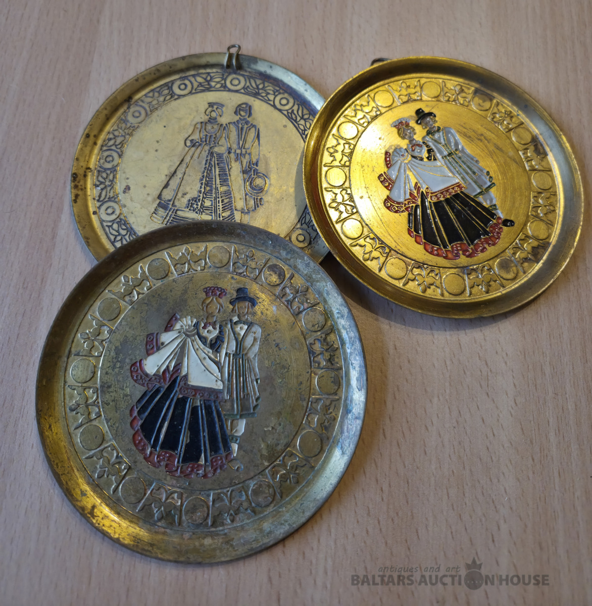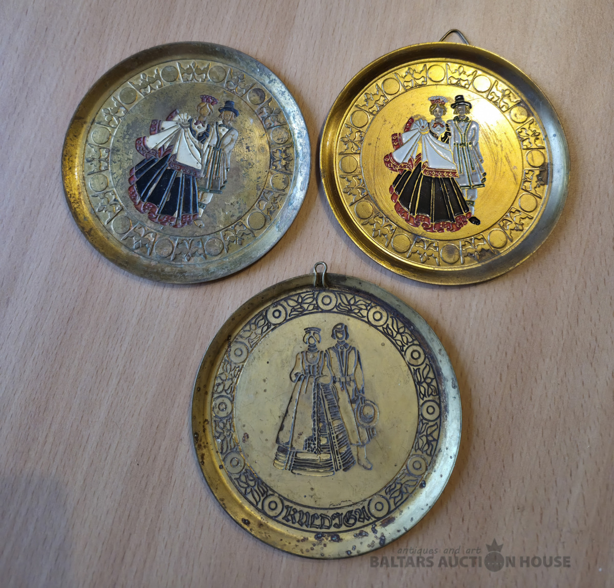 Nelieli padomju laika misiņa dekoratīvie sienas šķīvīši . D - 10 cm , bēdīgā stāvoklī