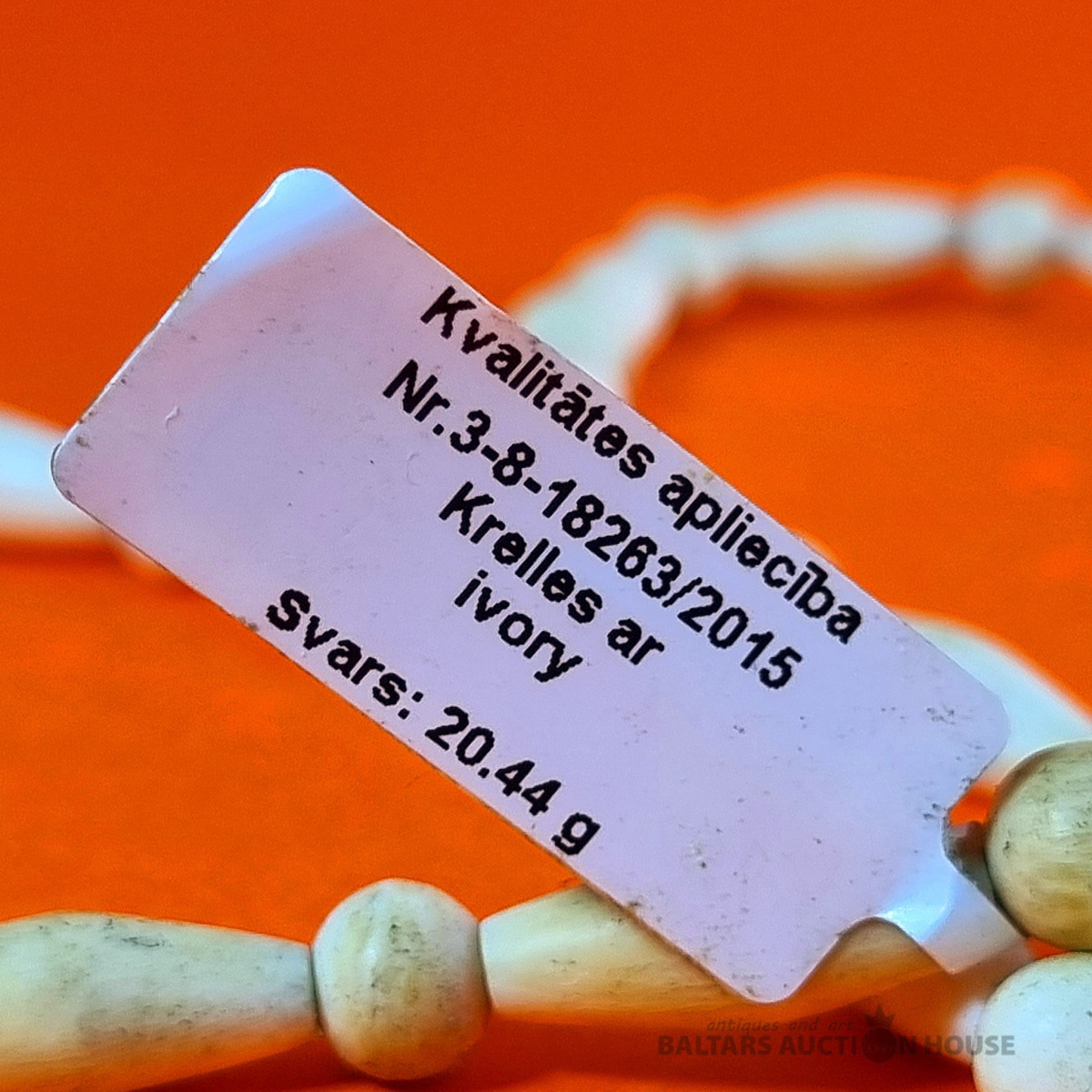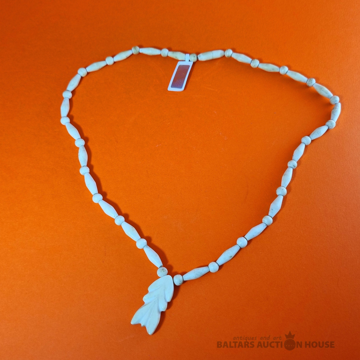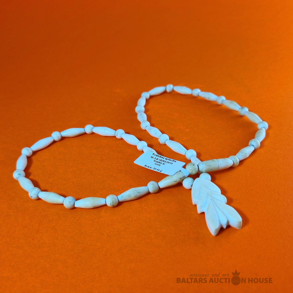 Kaklarota no ziloņkaula krāsas pērlītēm. Sertificēta proves biroja. Garums: 56 cm.