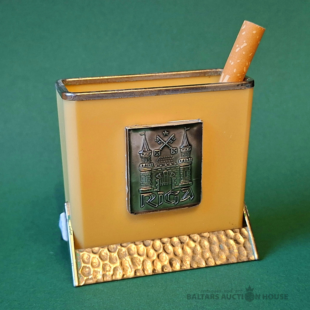 70.gadu Rīgas suvenīrs - salvešu(Par cigaretēm?) trauciņš ar pilsētas ģerboni (plastmasa, metāls), gabarīti 6,5 x 6,5 x 2,5 cm, cena 14,-€, labā stāvoklī.