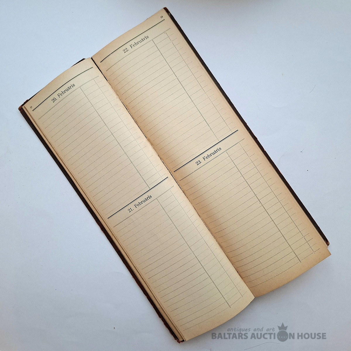 Dienasgrāmata. 1939.–1940. gads. Latvija. Izmērs: 35 cm x 11 cm. Stāvoklis atbilst fotoattēlam. Nav aizpildīts.