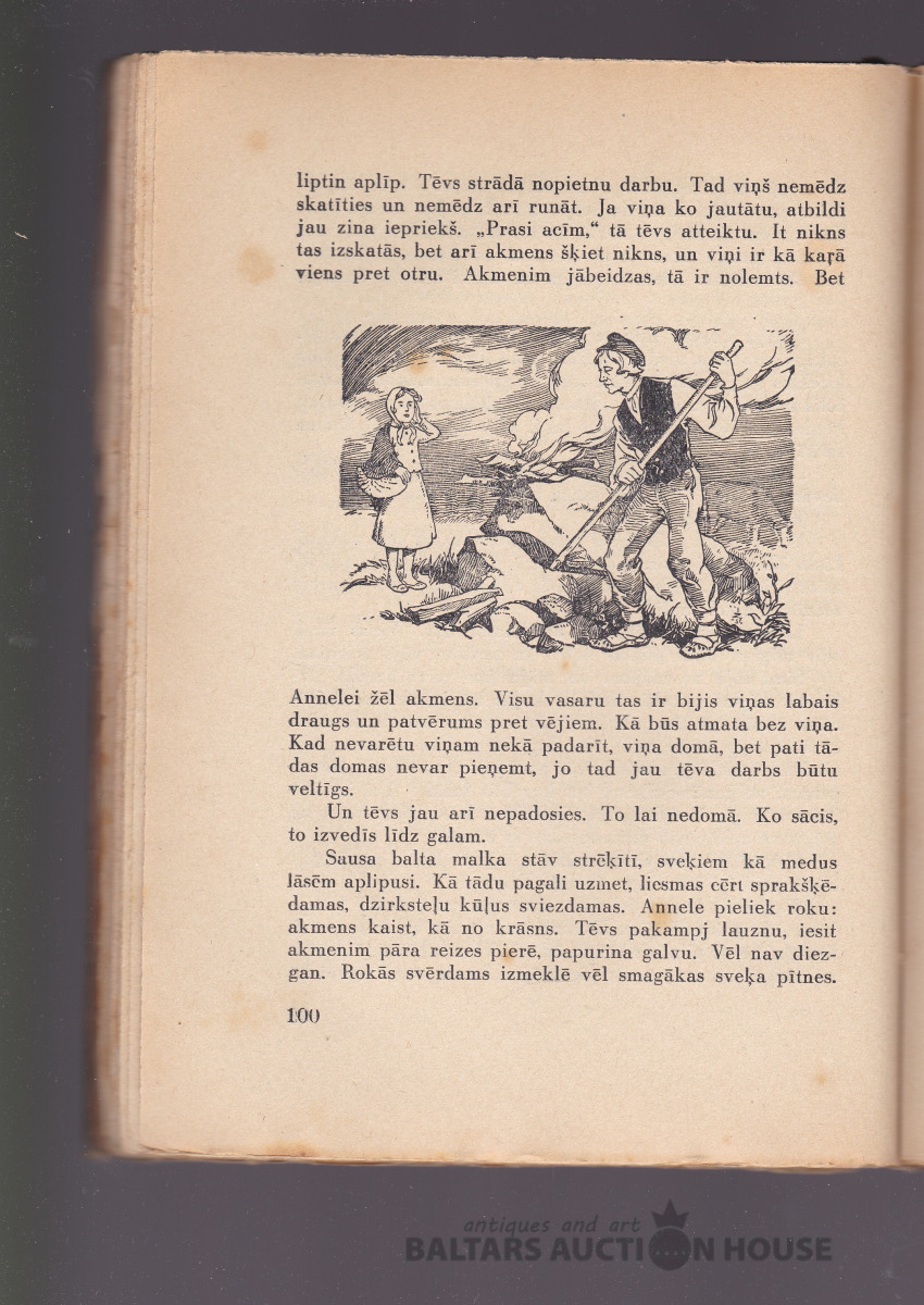 Blaumaņa un Poruka daiļdarbu izlase, 1948. g. SAUKSME. Leonīda Ozoliņa vāka zīmējums un katram stāstam individuāli zīmēta vinjete (kopā 7 ilustrācijas)