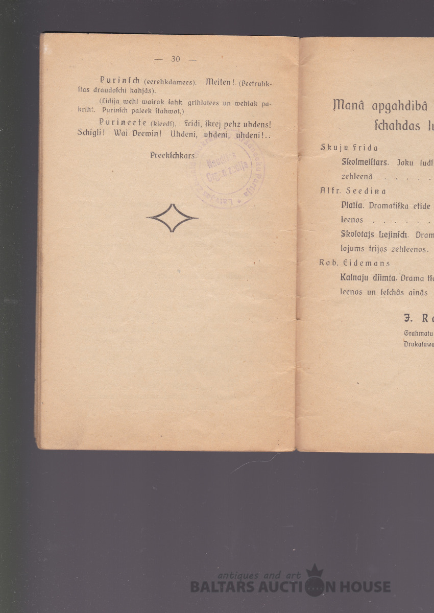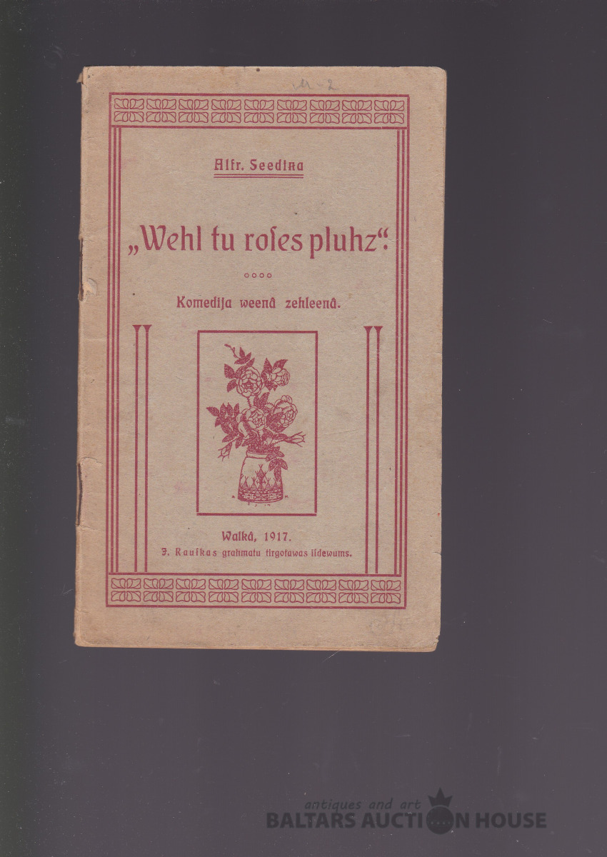 Alfrēds Ziediņš VAI TU ROZES PLŪC? 1917. g. Rauskas izdevums Valkā. Kara gadi. AR ZĪMOGU – Latvijas Sociālsemokrātiskā Strādnieku Partija (Naudītes pagasta organizācija)
