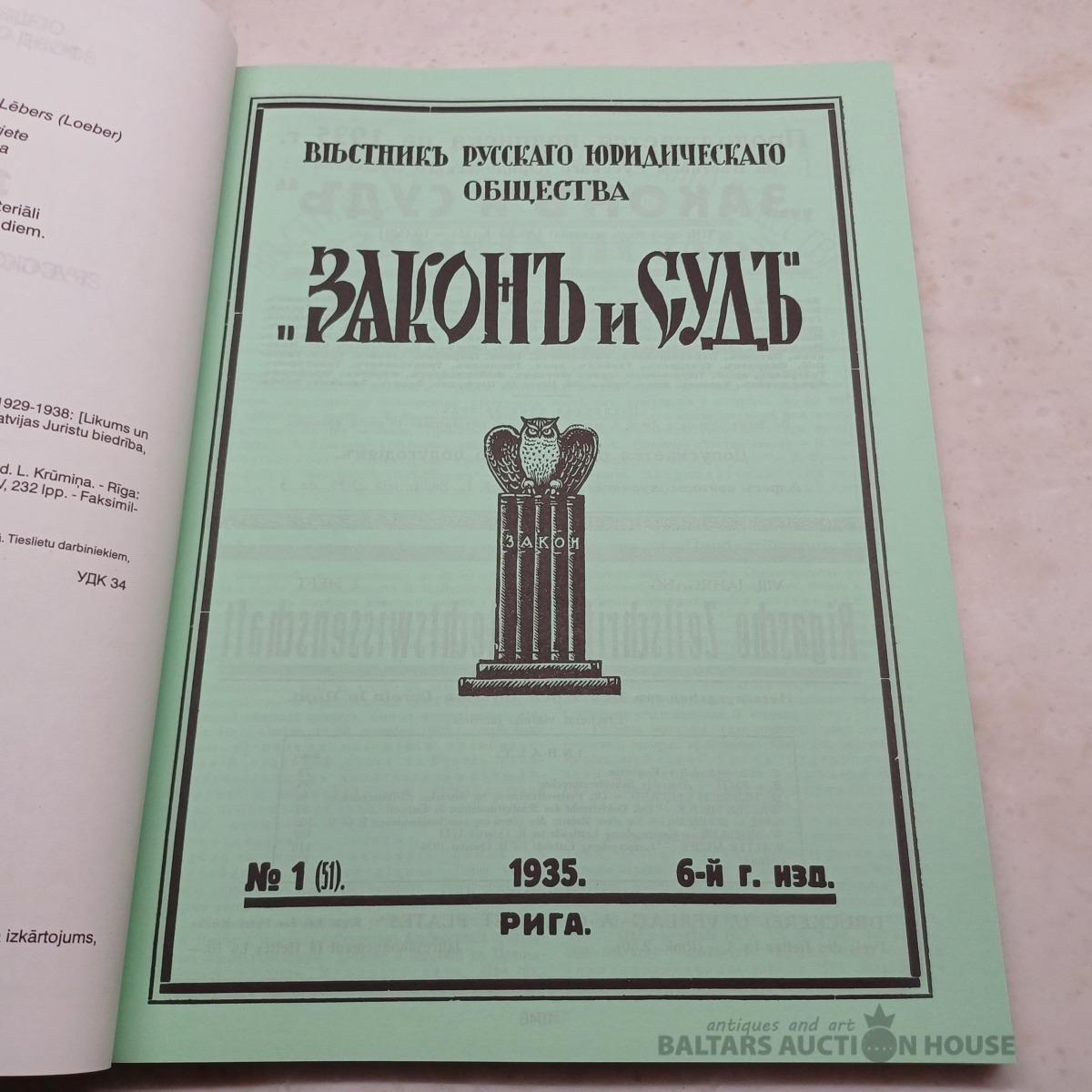 ЗАКОН И СУД, 1935. г., РИГА (ФАКСИМИЛЬНОЕ ИЗДАНИЕ) / Likums un tiesa, 1935. g. Rīga (faksimils) / PILNS GADS – Krievu juridiskās biedrības vēstnesis