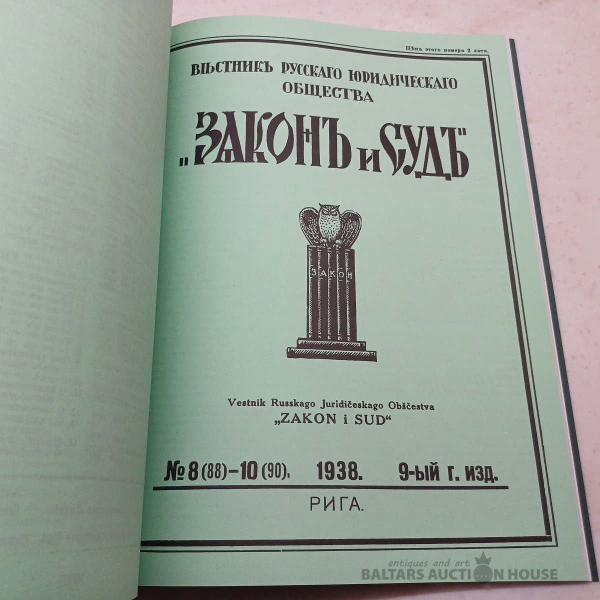ЗАКОН И СУД, 1938. г., РИГА (ФАКСИМИЛЬНОЕ ИЗДАНИЕ) / Likums un tiesa, 1938. g. Rīga (faksimils) / PILNS GADS – Krievu juridiskās biedrības vēstnesis