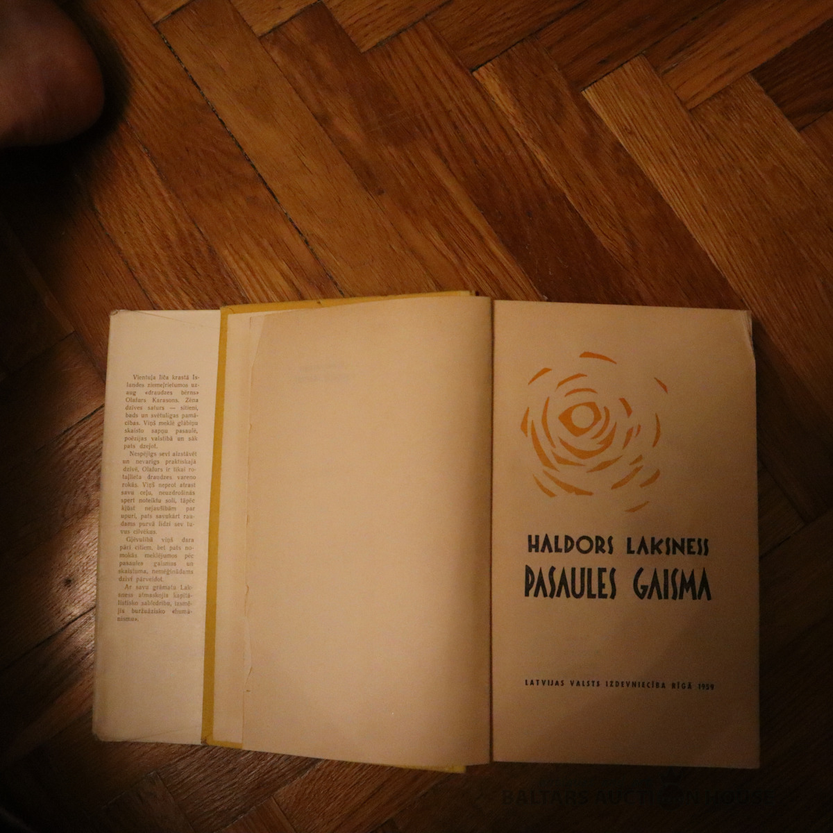 Haldors Laksness ''Pasaules gaisma'', 1959. gads. Grāmatai ieplīsis vāka apvalks.