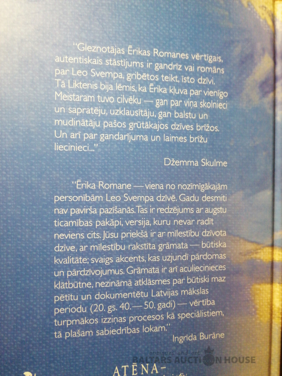 Ērika Romane “Mēs abi”, Atēna, 2002., 407 lpp. Gleznotāja Romane stāsta par savu dzīvi kopā ar izcilo gleznotāju Leo Svempu, par Latvijas mākslas dzīvi starpkaru un pēckara laikā. Jauna