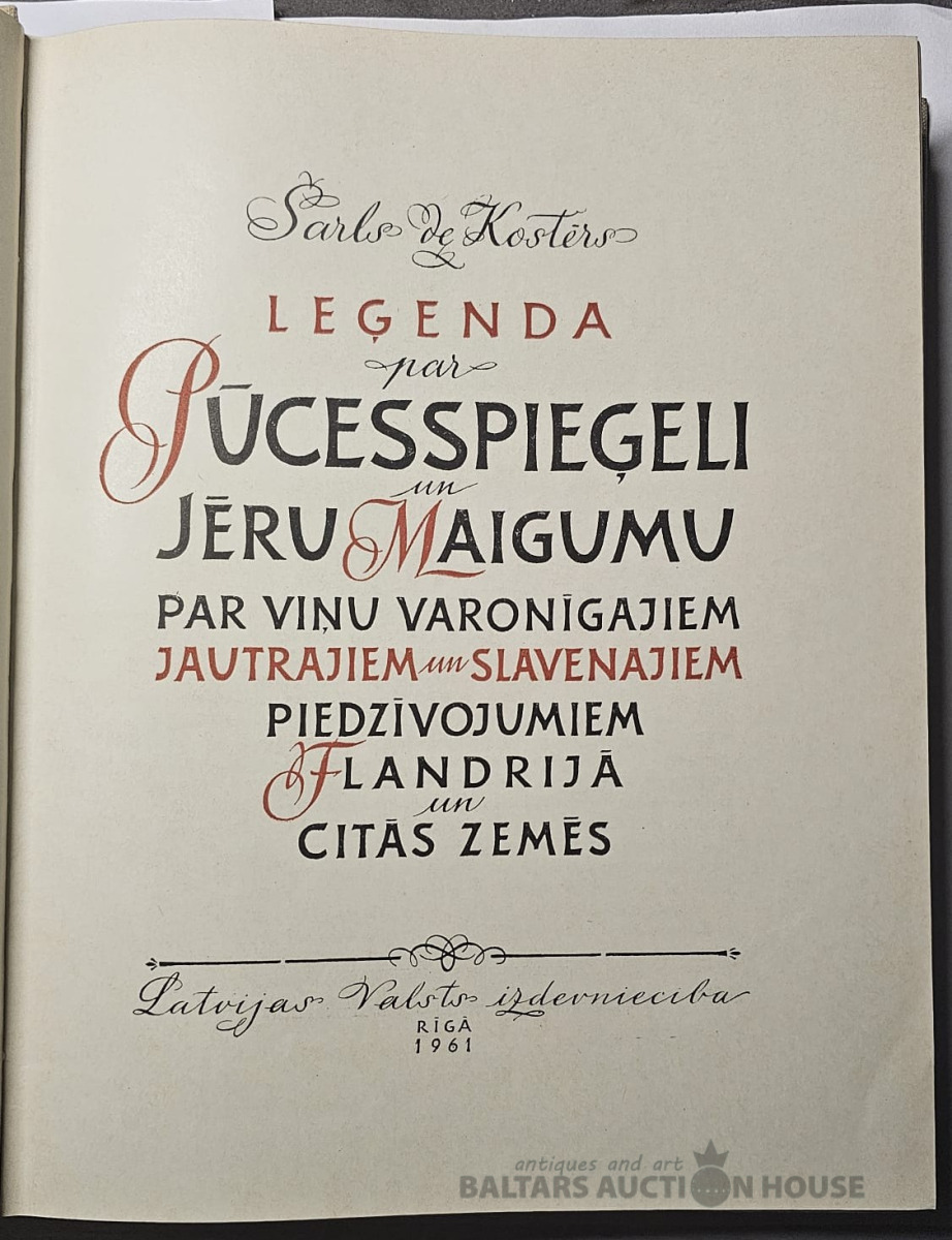 Leģenda par Pūcesspieģeli, Šarls De Kostērs, Latv. Valsts Izd. 1961, 510 lpp., Grāmata ideāla stāvokļi